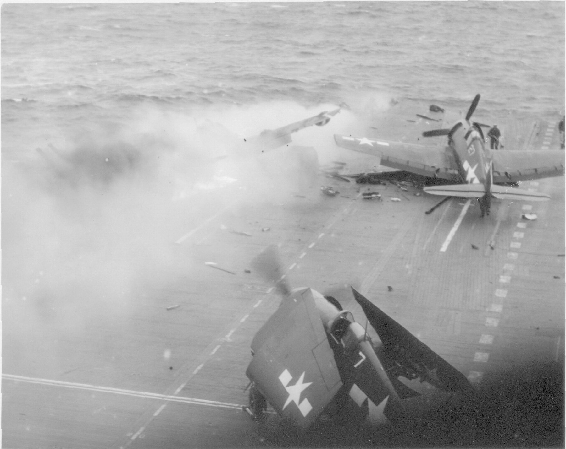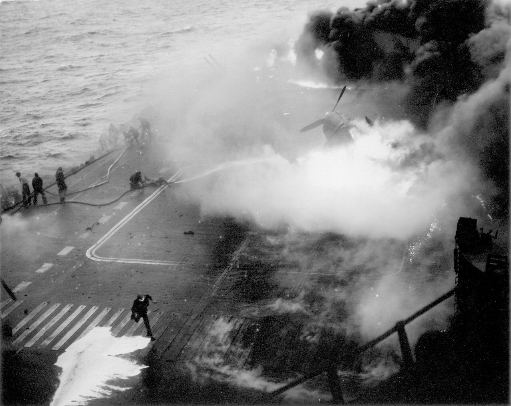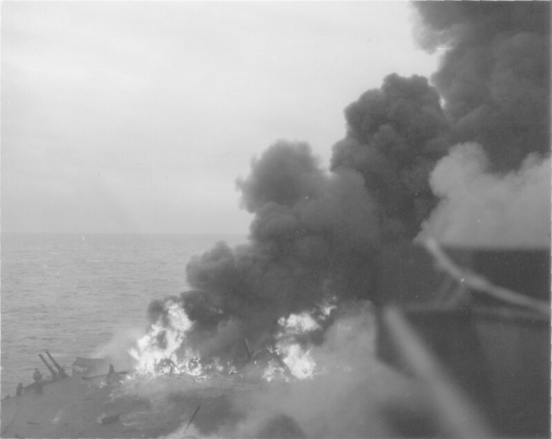 55k | "A few seconds after Jap plane hit catapult (Photo CV3 3687)" High Resolution Image 262k |