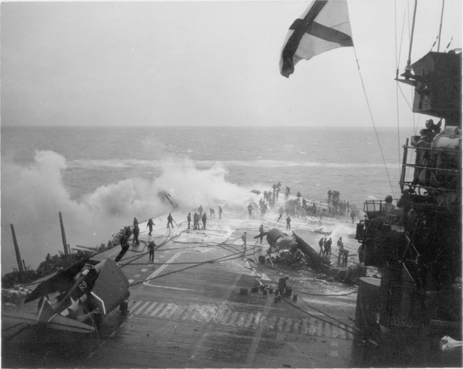 65k | "Fire fighting following second attack fwd. during attack. (Photo CV3 3579)" High Resolution Image 376k |