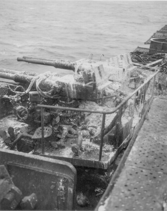 81k | "Some who perished at their battle stations (hanging between guns)". High Resolution Image 354k |