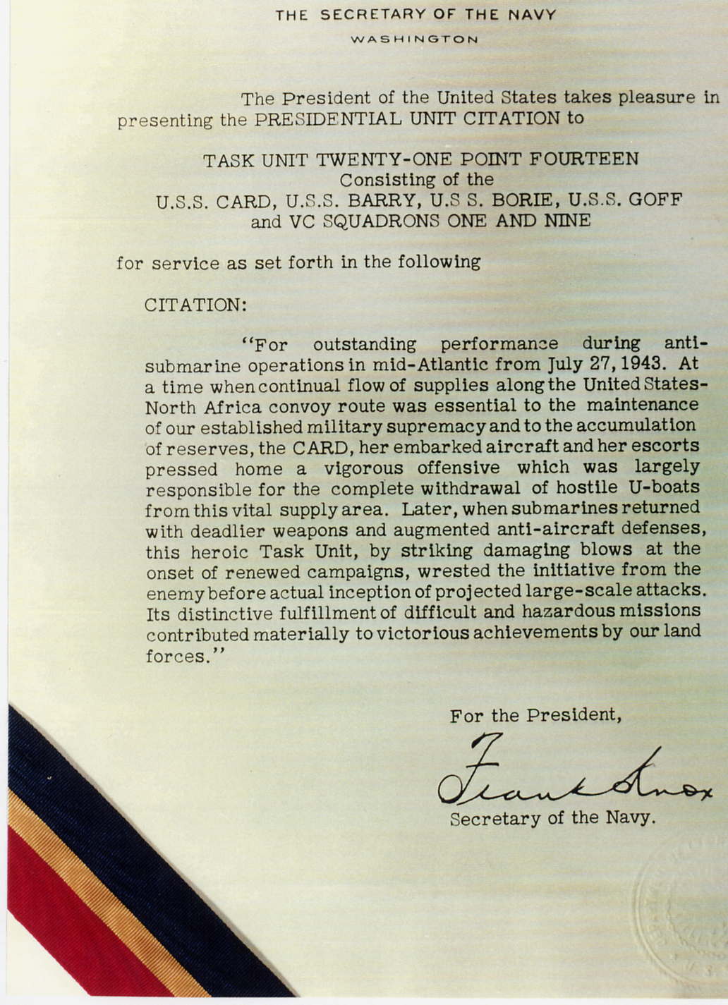Special thanks to Joseph Macchia, USS Card Historian, who checked this list.