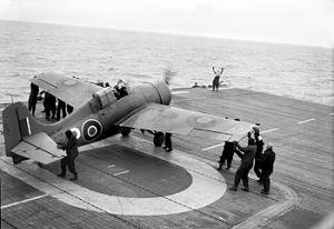 14k | A Grumman Wildcat of No. 882 Squadron Fleet Air Arm being manoeuvred into position for takeoff from HMS Pursuer off the northern coast of Norway, April 1944. Photo taken by Lt. F.A. Davies, Royal Navy official photographer. Photo Id: A 23059 from the photographic collections of the Imperial War Museum. Note: The real identity of this carrier is in doubt. She is identified as Pursuer by the Imperial War Museum, but No. 882 Squadron was serving aboard HMS Searcher at this time. |