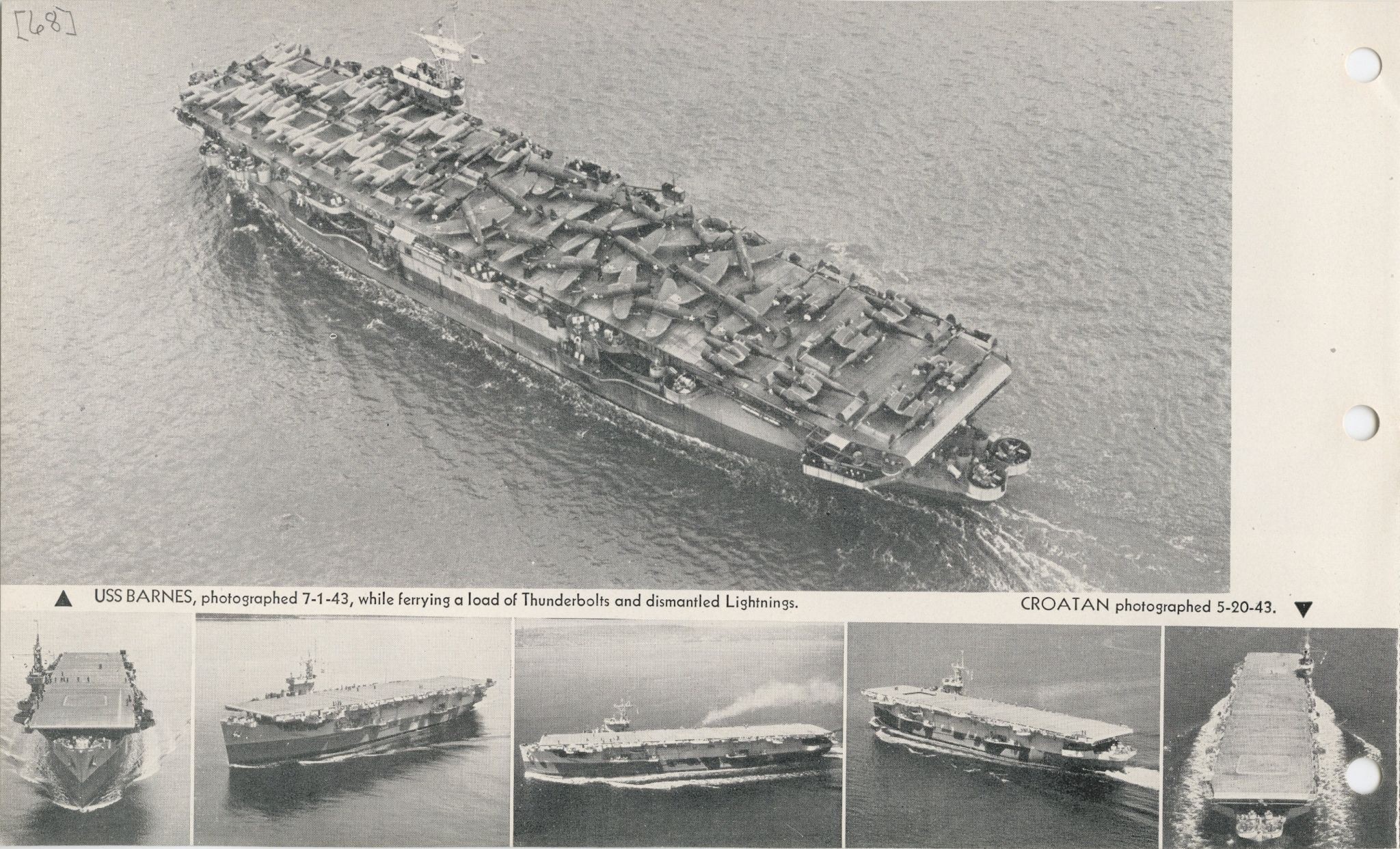 674k | USS Barnes (ACV-20), 1 July 1943, and USS Croatan (ACV-25), 20 May 1943. ONI 54-CV, Division of Naval Intelligence, Identification and Characteristics Section, 11-43. |