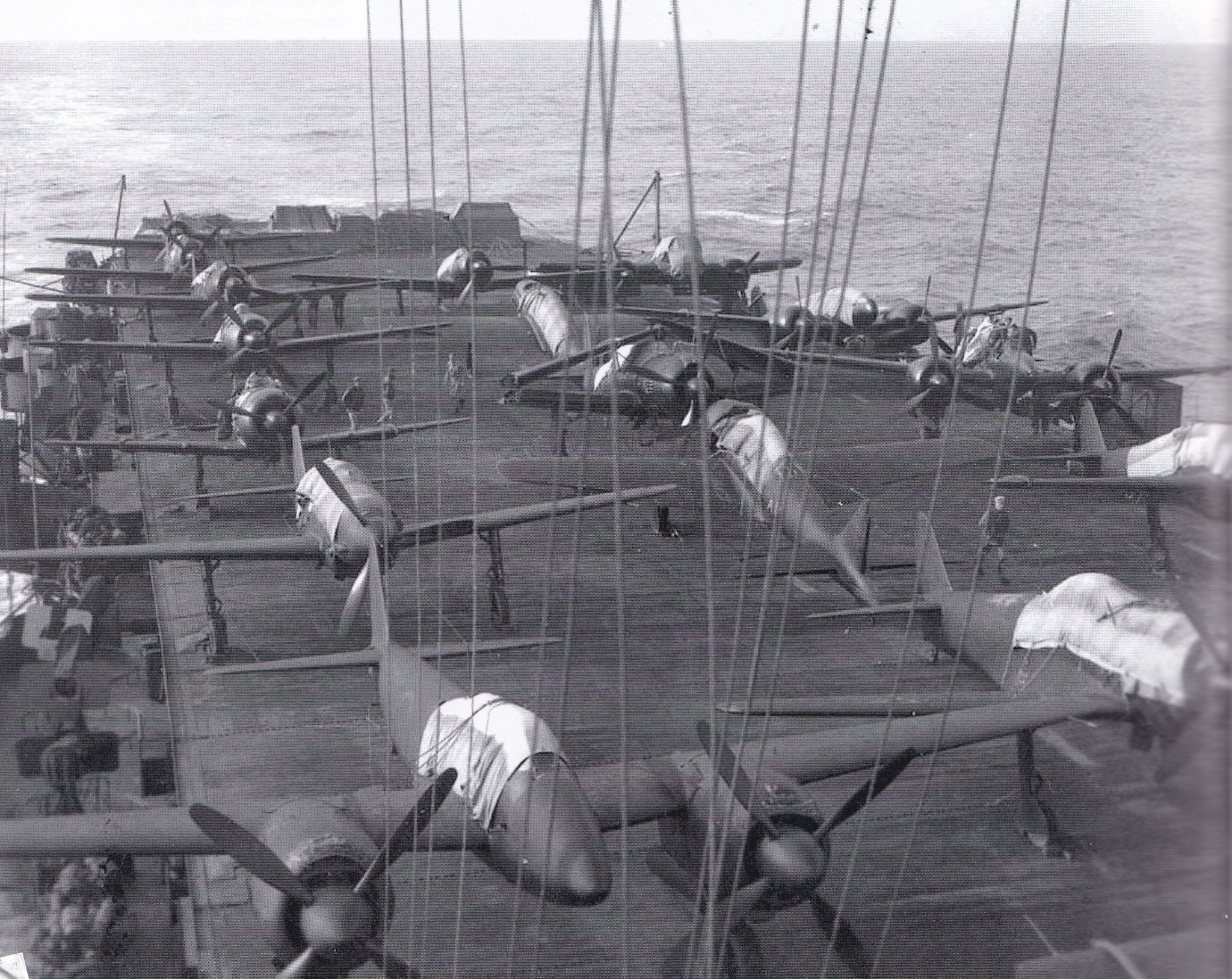 862k | USS Barnes (CVE-20) underway bound for the U.S., November 1945 with a deck cargo of JNAF and JAAF fighter, reconnaissance and dive-bomber types lashed down to the flight deck. The most unusual type at bottom left is the twin-engined Nakajima J5N1 Tenrai ("Heavenly Thunder"). Photo Aviation History Collection/Alamy Stock Photo. Image scanned from Wings of the Rising Sun: Uncovering the Secrets of Japanese Fighters and Bombers of World War II, by Mark Chambers. Osprey Publishing, Bloomsbury Publishing PLC, PO Box 883, Oxford, OX1 9PL.,UK. Also 1383 Broadway, 5th Floor, New York, NY 10018, USA. ISBN HB 978 1 4728 2373 4. |