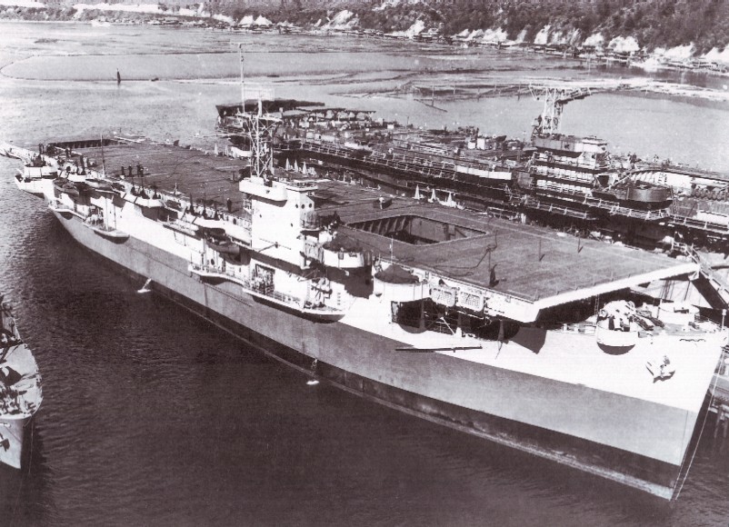 160k | A nearly complete Block Island (ACV-21) at the Seattle-Tacoma Shipyard, 1943. She is painted in Measure 22 camouflage scheme, in preparation for duty in the Atlantic. (U.S. Navy photo, courtesy of The Floating Drydock, from Naval Camouflage 1914–1945: A Complete Visual Reference, by David Williams.) |