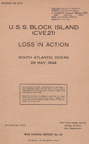 23k | U.S.S. Block Island Read the "Action Report on the Operations Concerning the Loss by Enemy Action of the U.S.S. BLOCK ISLAND on 29 May 1944." Courtesy of the U-Boat Archive. |