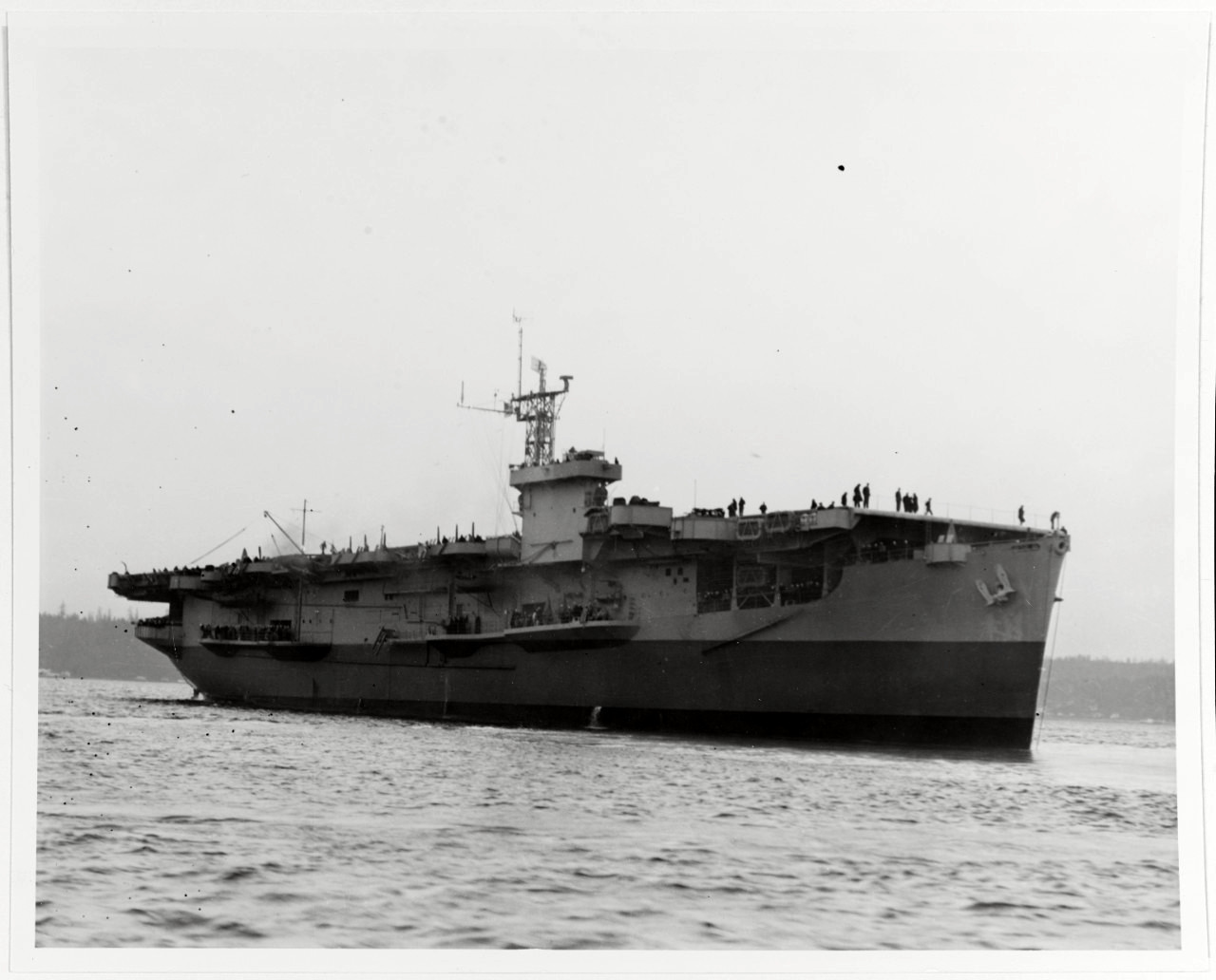 106k | USS Block Island (CVE-21) off the Puget Sound Navy Yard, Bremerton, Washington, 23 March 1943. National Archives and Records Administration (NARA) photo, # 19-N-43088. |