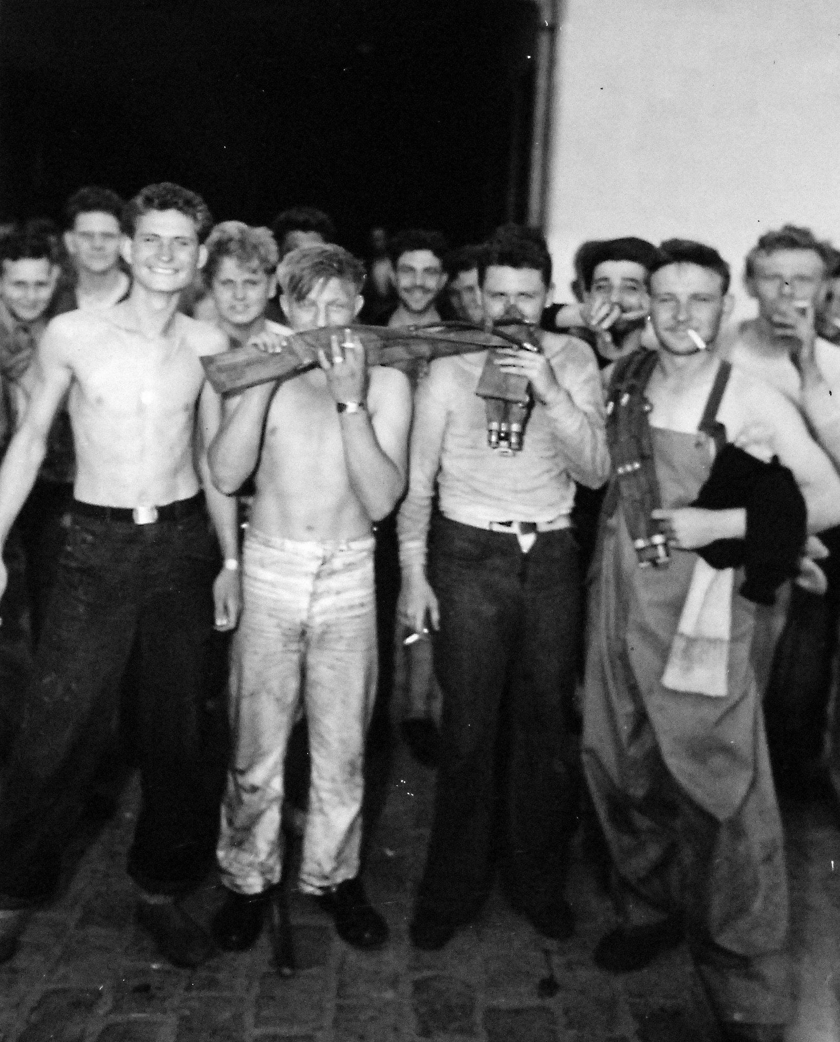 139k | U-66, a Type IXC submarine, was the last victim of USS Block Island (CVE-21) Task Group before Block Island herself was sunk by U-549 some three weeks later. This photo was in the possession of Hermann Hartmann, Obermachinenmaat, one of the survivors, and shows U-66 docking, with part of its crew on review (date and location unknown). Task Group 21.11, comprised of Block Island with Composite Squadron (VC) 55 and Destroyer Escort Division 60—USS Ahrens (DE-575), USS Barr (DE-576), USS Eugene E. Elmore (DE-686), and USS Buckley (DE-51)—first contacted U-66 a few minutes before midnight on 1 May 1944. The Group hunted the U-boat for several days, but aerial attacks with acoustic torpedoes and depth charges were unsuccessful. Finally, at 0330 on 6 May, an unarmed TBM-1C Avenger flown by LT(JG) Jimmie J. Sellars picked up a blip on radar and coached Buckley to the attack. U-66 fired torpedoes and automatic weapons against the DE. Buckley fired her 3in, 20mm and 40mm guns and rammed the enemy boat. Of the total complement of 60 officers and men, 36 were rescued by Buckley and later transferred to Block Island. The commanding officer of U-66, Oberleutnant zur See (posthumously advanced to Kapitänleutnant) Gerhard Seehausen, and two British prisoners who were aboard, were not among the survivors. NS0302115a shows the four surviving officers, left to right: Leutnant (Ing.) d. R. Ludwig Flintsch, Oberleutnant (Ing.) Georg Olschewski, Oberleutnant z. S. Klaus Herbig, and Oberleutnant z. S. Richard Ketelsen. NS0302115b shows the Warrant Officers, Chief and Senior Petty Officers. Front row, left to right: Obersteuermann Richard Höhn, Oberfunkmaat Karl Degener-Böning, Maschinenmaat (E) Franz Nirnberger, Obermaschinist (E) Walter Landvoight, Maschinenmaat (E) Georg Grölz. Back row, left to right: Funkmaat Werner Pasedak, Obermaschinist (D) Bernhard Terinde, Stabsobersteuermann Werner Fröhlich, Sanitatsmaat Wolff Loch, Obermaschinemaat Werner Hartman. NS0302115c shows the lower ranking Petty Officers and below. Front row, left to right: Maschinenobergefreiter (D) Horst Koch, Matrosenobergefreiter Vinzenz Nosch, Matrosenobergefreiter Walter Drewek, Funkobergefreiter Harry Schönel, Maschinenobergefreiter (E) Helmut Löser. Middle row, left to right: Matrosengefreiter Leonhard Burian, Maschinengefreiter (D) Hans Hoffmann, Maschinenobergefreiter (D) Anton Klaus, Matrosenobergefreiter Kurt Fickel, Matrosengefreiter Helmuth Künkel. Back row, left to right: Maschinenobergefreiter (E) Willi Hahner, Mechanikerobergefreiter Helmut Illing, Maschinengefreiter (E) Fritz Buttgereit, Funkgefreiter Gottlieb Melmuka, Maschinengefreiter (D) Helmuth Rautenberg, Maschinenobergefreiter (D) Günther Schmidt, Matrose II – Masch. Herbert Teuscher, Maschinenobergefreiter (E) Heinz Lehmann. Not shown: Matrosenobergefreiter Heinrich Haller. |