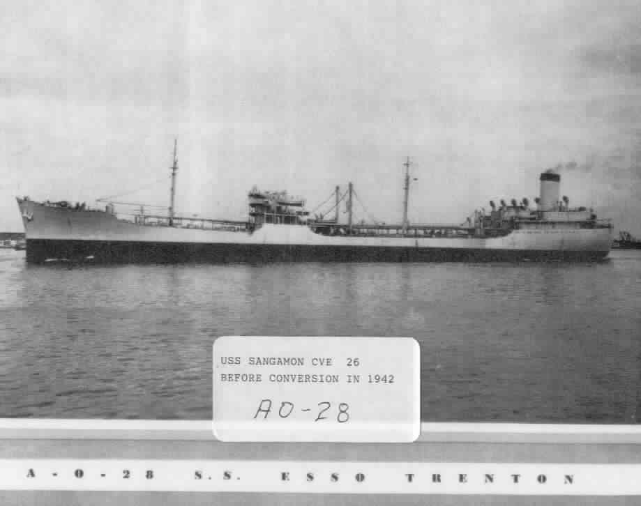 22k | One of twelve National Defense Tankers ordered on 3 January 1938, SS Esso Trenton was built to a joint Navy-Maritime Commission design. She was acquired by the Navy in October 1940 and renamed Sangamon. As a fleet oiler (AO) she would be eventually armed with four 5"/38 guns in single mounts. |