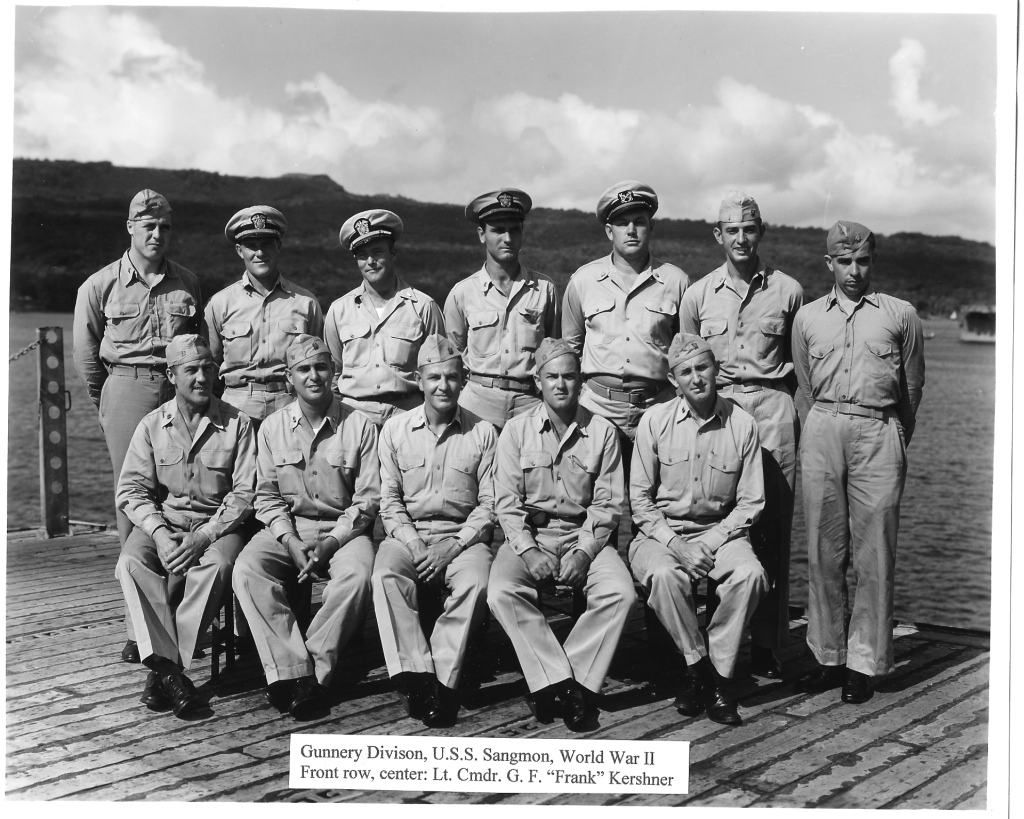 354k | Gunnery Division, USS Sangamon, World War II. Front row, center: LCDR G.F. "Frank" Kershner. |