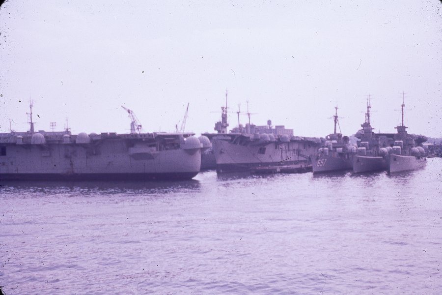 107k | In reserve "Mothballs" at South Boston Naval Annex, (Center) in this 1959 photo. | ©Richard Leonhardt | |