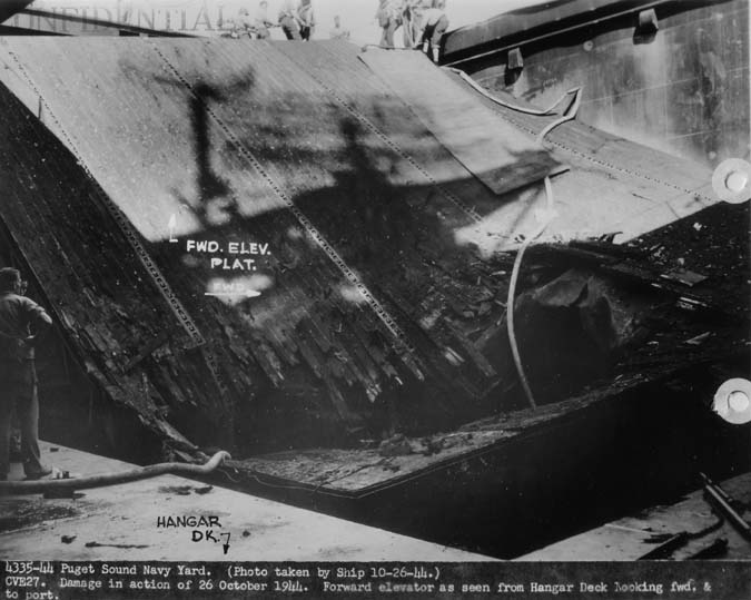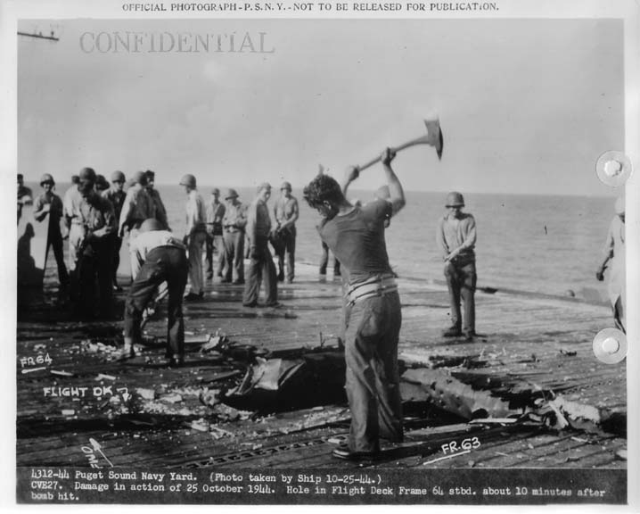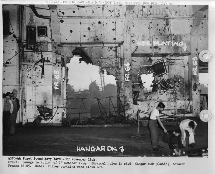 68k | Puget Sound Navy Yard, 27 November 1944. Damage in action of 25 October 1944. Shrapnel