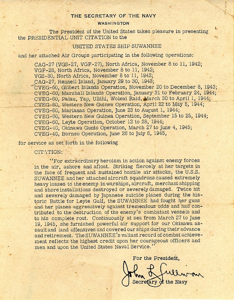 Hazegray & Underway World Aircraft Carrier Pages By Andrew Toppan. U.S.S. Suwannee (CVE 27) Escort Carrier Sailors & Airmen Association |