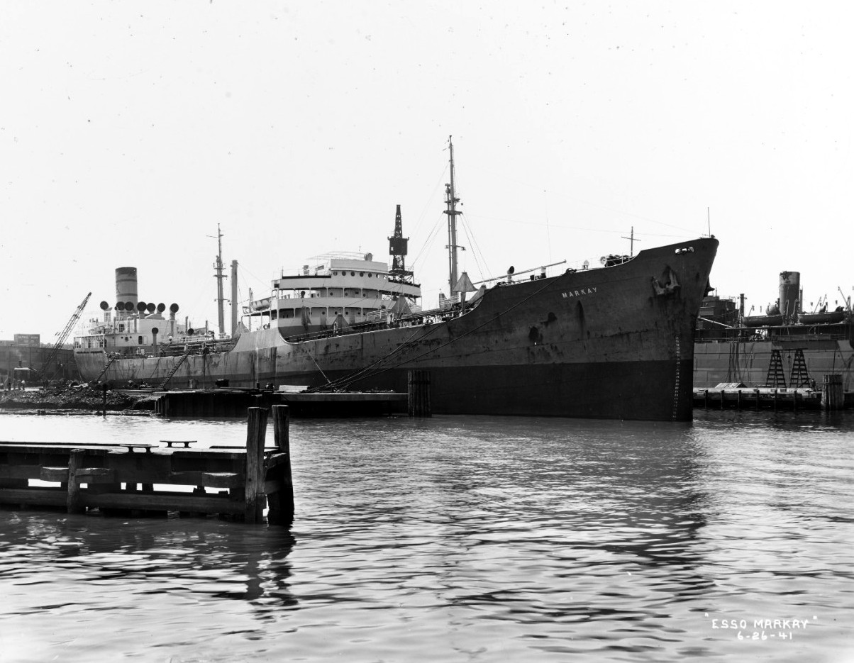40k | Keystone Tankship Corp. tanker SS Markay tied up pierside (NS0302743) and underway (NS0302743a), location and dates unknown. Betty wrote: "My father, Commander Vernon Dietz served on [this ship]. He was employed by Keystone Tankship Corp. from 1933–1949." | Betty Hillard, via Auke Visser's Famous T-Tankers Pages, via Robert Hurst |