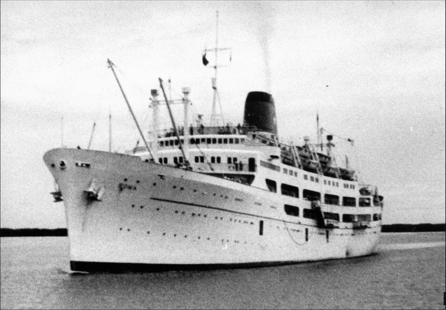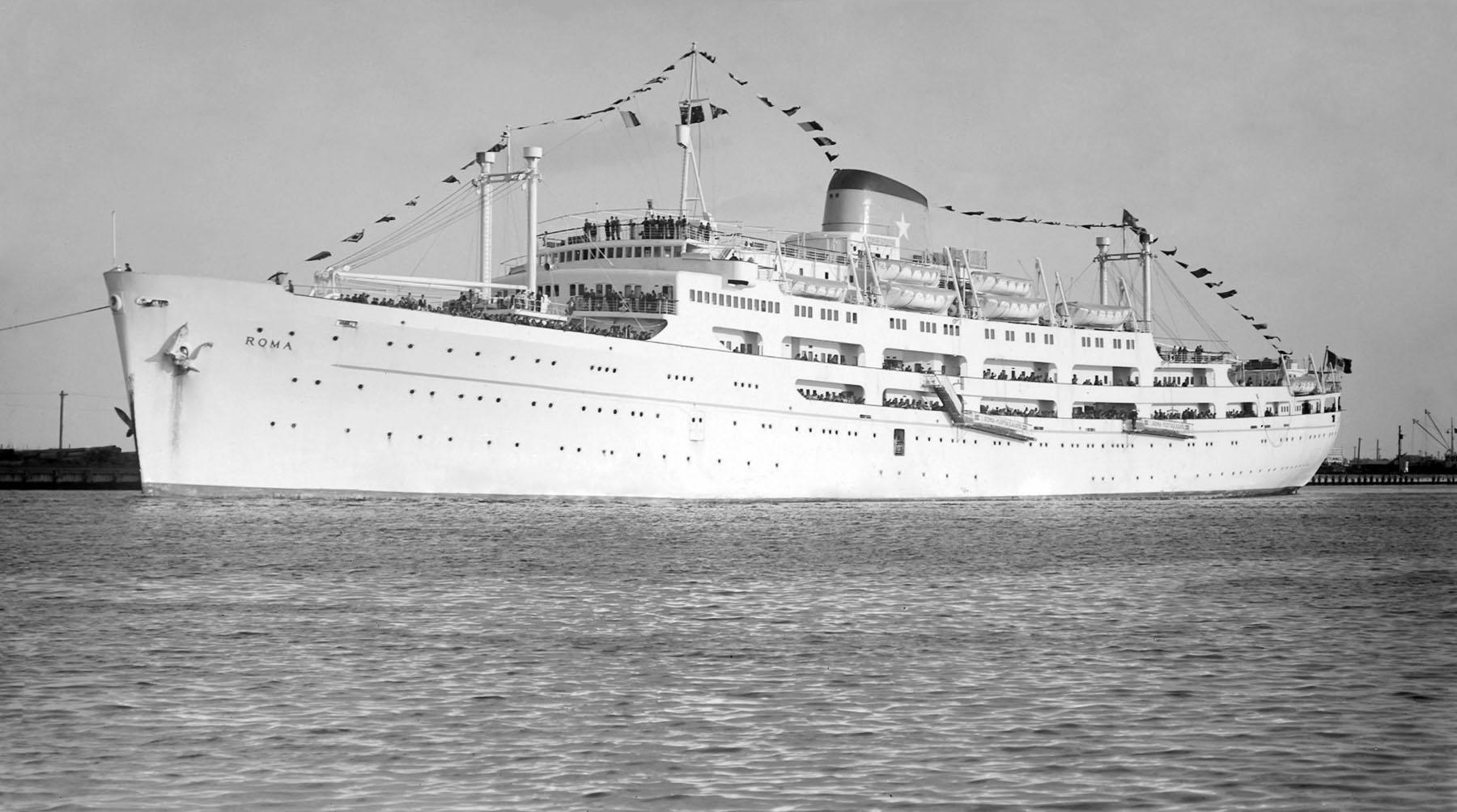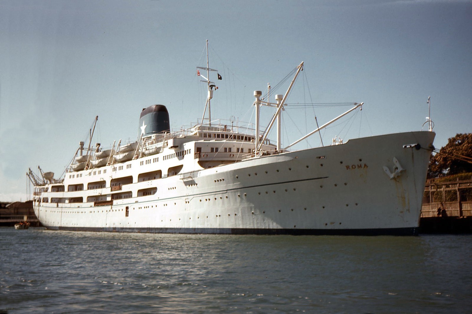 279k | Ex-HMS Atheling (D51), formerly USS Glacier (CVE-33), was bought by Italian shipping tycoon Achille Lauro in 1949, converted to a passenger vessel in Italy, in 1951, and renamed Roma. She started, along with her sister Sydney—ex-HMS Fencer (D64), formerly USS Croatan (CVE-14)—as a passenger vessel on the Mediterranean-Australia route, but was transferred to the North Atlantic beat (Mediterranean-USA) in 1953. After a major refit, the ship was transferred again to the Mediterranean-Australia route in 1956. She was laid up in La Spezia, Italy, in 1967 and scrapped in Vado, Italy, starting December 1967. Location and exact dates of photos are not known. Color photo may have been taken in Australia. It is worth noting that Sydney was renamed Roma after her sister by that name was withdrawn from service. Both vessels just differed in details and this is a source of many confusions. |