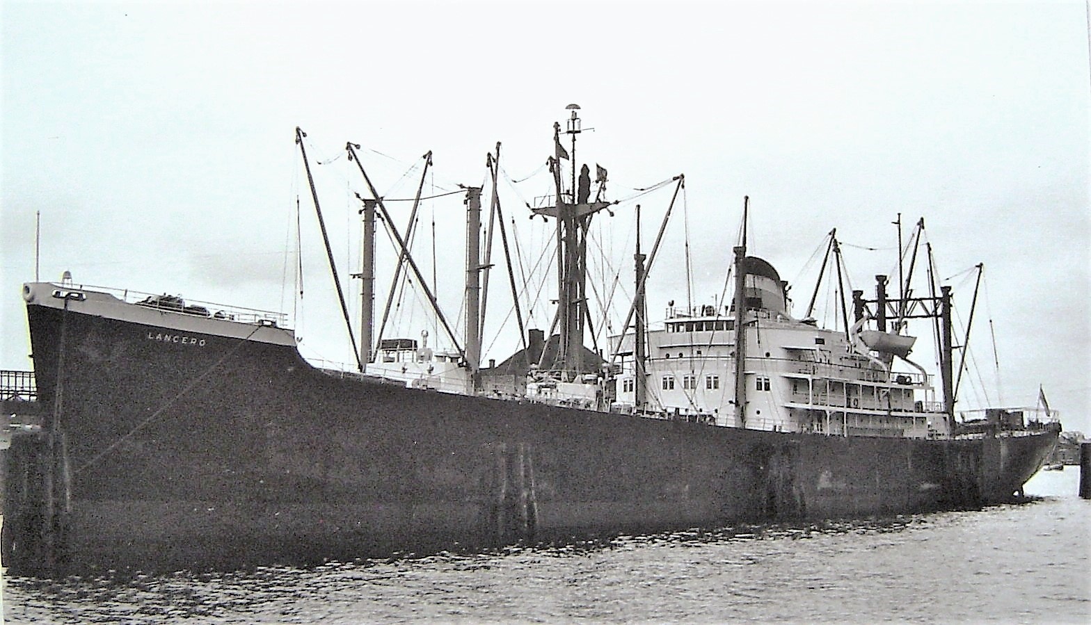 196k | Archive photo of the Argentinian vessel Lancero, ex-Delgada CVE-40), ex-HMS Speaker (D90/R314) underway and fully laden. Source unknown. |