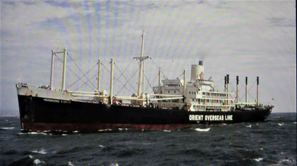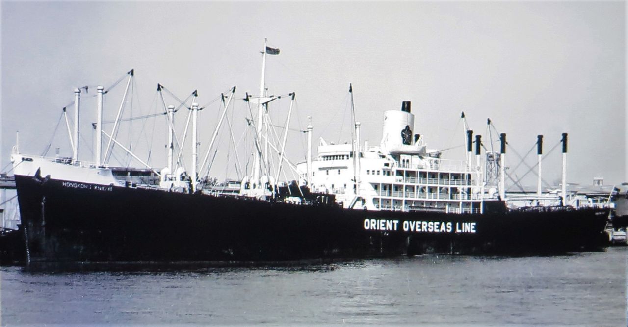 97k | Three archive pictures of ex-Estero, ex-HMS Premier, as Hong Kong Knight, in Hong Kong-based Orient Overseas Line (now Orient Overseas Container Line, OOCL) colors. |