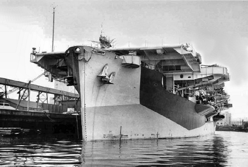 104k | This ship is sometimes identified as HMS Queen, Lapointe Pier, Vancouver, January 1944, but it is not clear if this is correct (see The History of HMS Queen: A World War II Lend Lease Escort Aircraft Carrier, by David G. Weaver, CPM. |