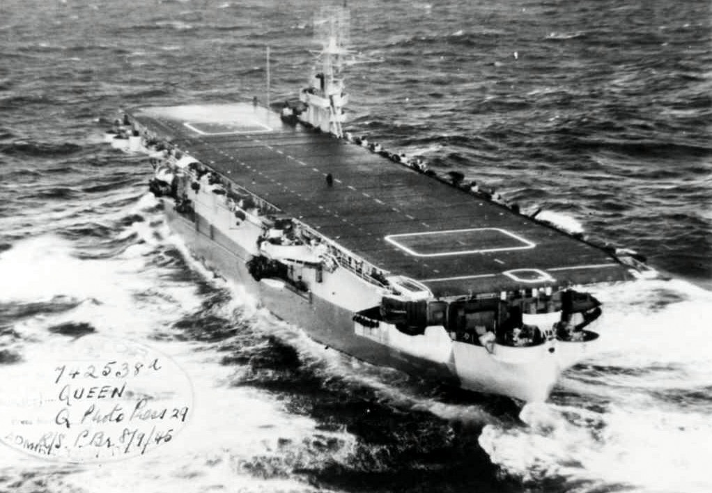 160k | Port quarter view of HMS Queen (D19) underway on 9 August 1945. Source: Imperial War Museums , Ministry of Defense Foxhill Collection of Ships Photographs, Photo No. © IWM(FL 17807). |