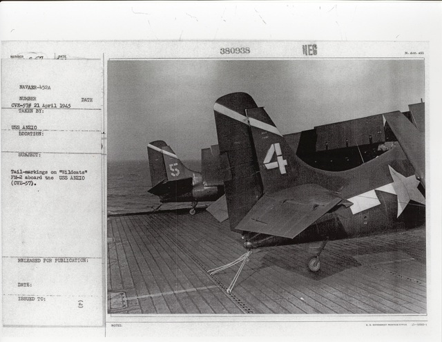 (CVE-57). Pilot Lt. (jg) J.J. Masters. National Archives photo (# 80-G-86023). |