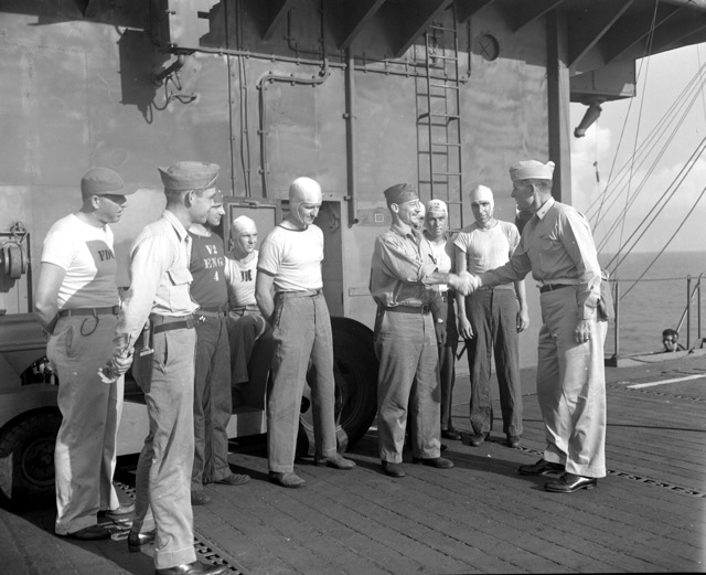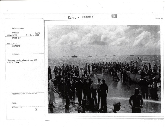 76k | "Crossing the Line" ceremony, 15 March 1944. National Archives photo (# 80-G-230311). |