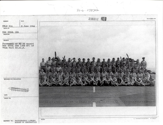 81k | TBF (or maybe TBM?) Avenger and crew, Composite Squadron (VC) 33. VC-33 was attached to USS Coral Sea (CVE-57) from 8 October 1943 to 9 August 1944. |