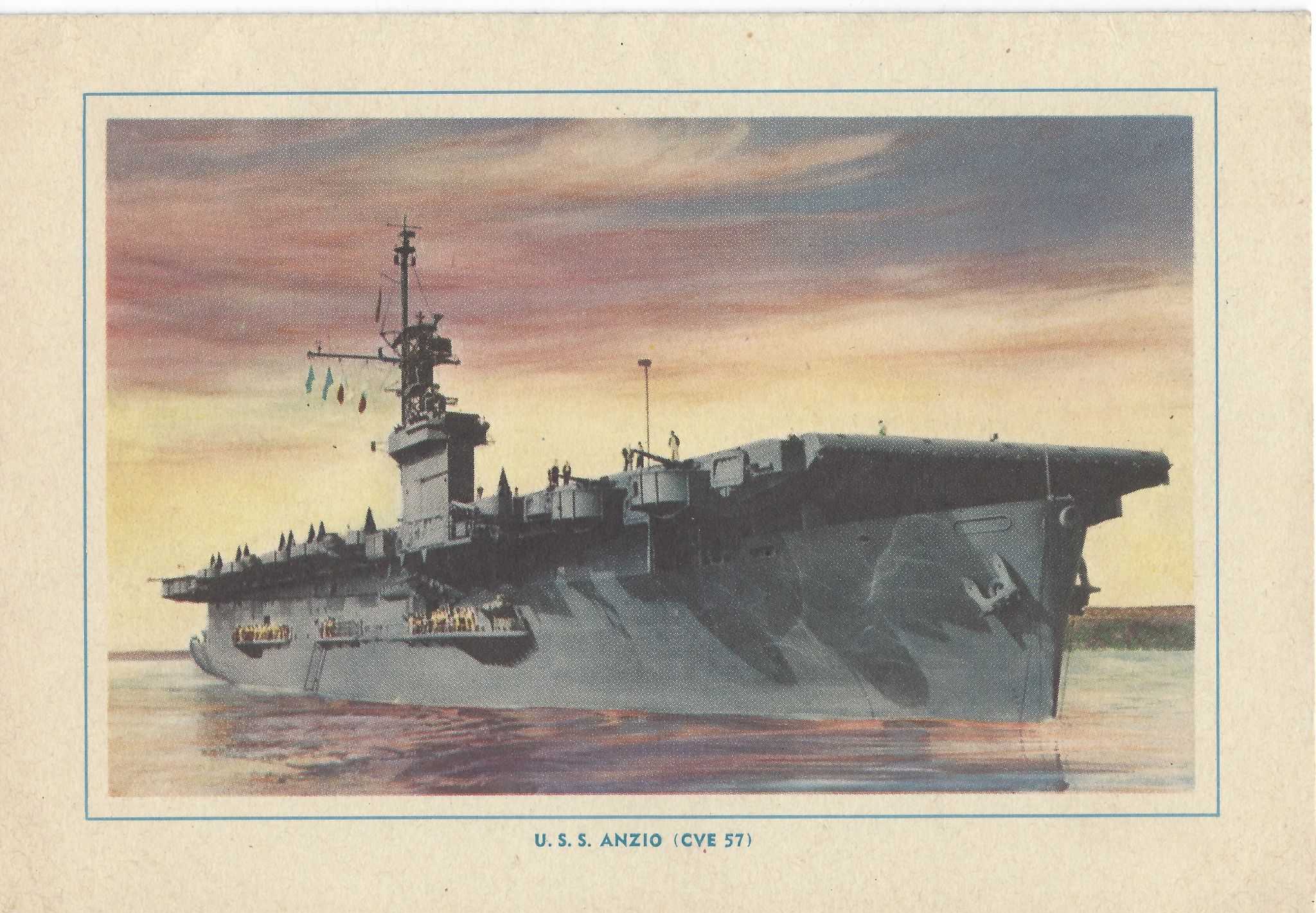 589k | USS Anzio (CVE-57). Although "personalized" for each ship, this is in fact a generic image of the Casablanca-class CVEs. |