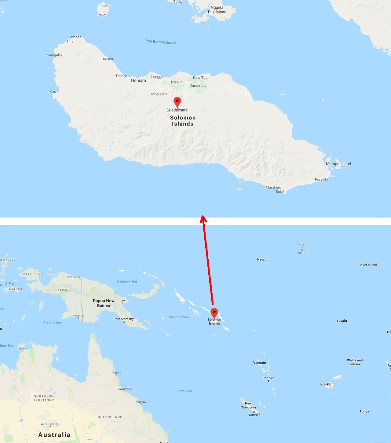 64k | AVG-60 (later ACV-60, CVE-60 and CVU-60) was initially named Astrolabe Bay for a bay (NS0306022) between Astrolabe Peninsula and Boussole Head, in Glacier Bay, Alaska. It was named in 1883 by George Davidson, U.S. Coast and Geodetic Survey (USC&GS), for L'Astrolabe (under Paul-Antoine Fleuriot, Vicomte de Langle), one of the two ships of the French scientific expedition under Jean-François de Galaup, comte de La Pérouse, which explored the region in 1786. Interestingly, the Geographic Dictionary of Alaska (1906) lists an Astrolabe Point but not an Astrolabe Bay. Anyway, the name Astrolabe Bay was assigned to ACV-60 on 22 January 1943. Renamed Guadalcanal, 3 April 1943, to commemorate the recent successful conclusion of the arduous six-month campaign to wrest the island by that name from Japanese hands. The Japanese invaded Tulagi in the Solomon Islands (3–4 May 1942), and subsequently occupied some of the neighboring islands including Guadalcanal, a volcanic island approximately 90 miles long and 25 miles wide (NS0306022a). When Allied planners learned in early July that the Japanese began building an airfield at Lunga Point on Guadalcanal, they grew concerned that enemy planes flying from the field could savage Allied ships supplying eastern Australia, and support further Japanese landings on the chain of islands stretching across the South Pacific. The Americans consequently resolved to deny the area to the enemy before they could turn it into a bastion and landed on Japanese-held Guadalcanal, Florida, Gavutu, Tanambogo, and Tulagi on 7 August 1942 during Operation Watchtower—the first U.S. land offensive of WWII. The Americans cleared the other islands of the Japanese during fierce fighting, but the Japanese bitterly contested the landings on Guadalcanal. The fighting raged for months as the enemy poured reinforcements into the island to drive the Americans into the sea. However, despite horrific casualties, the Americans gradually won the battle of attrition and drove the enemy across Guadalcanal. The Japanese reluctantly decided to evacuate Guadalcanal, and their organized resistance on the island ended on 9 February 1943, following the final evacuation of their main forces. The Allied victory proved a costly one but rolled the Japanese back from threatening the maritime lifeline to Australia and thrusting at the South Pacific islands. NS100302004: US Marine Corps LVT(1) amphibian tractors move toward the beach on Guadalcanal Island. This view was probably taken during the 7–9 August 1942 initial landings on Guadalcanal. USS President Hayes (AP-39) is in the background. Naval History & Heritage Command (NHHC) photo, # NH 97749. (Maps courtesy of Google Maps Aircraft Carriers: An Illustrated Design History, by Norman Friedman..) |
