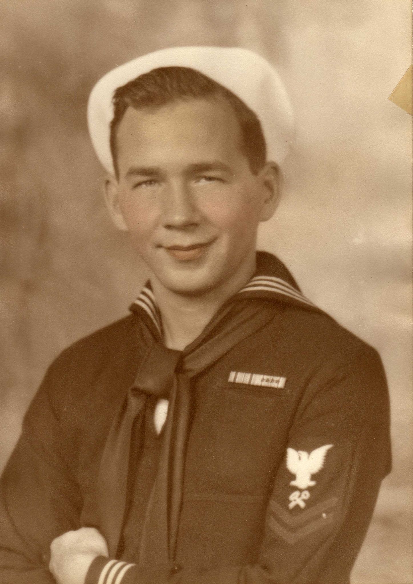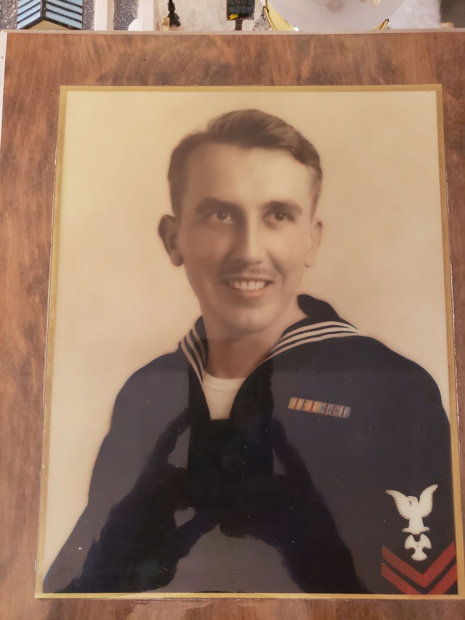 234k | Edgar W. DeGraff (MM1/c) (1921–2015) served aboard USS Manila Bay (CVE-61) and was on the ship during the Kamikaze attack on 5 January 1945. A colorized photo of Edgar W. DeGraff while he was in the Navy. |