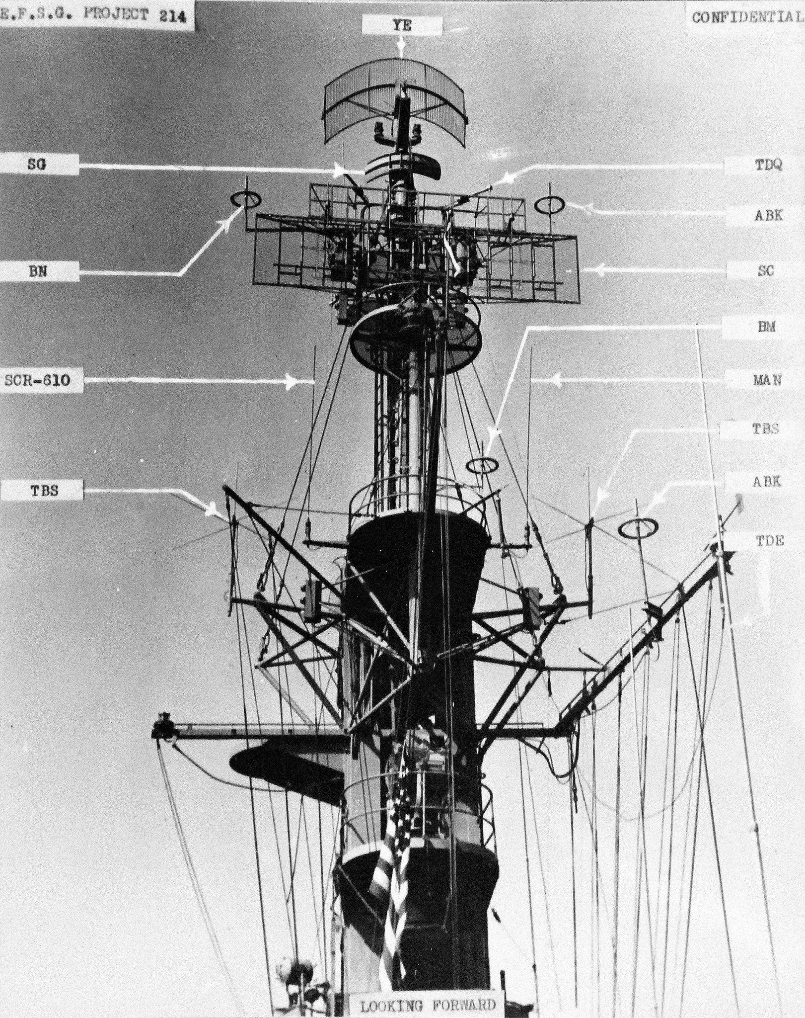 1.02M | Radar Installations aboard USS Manila Bay (CVE-61), looking forward. San Diego, California, 28 April 1945. National Archives and Records Administration (NARA), photo # 80-G-372870. |