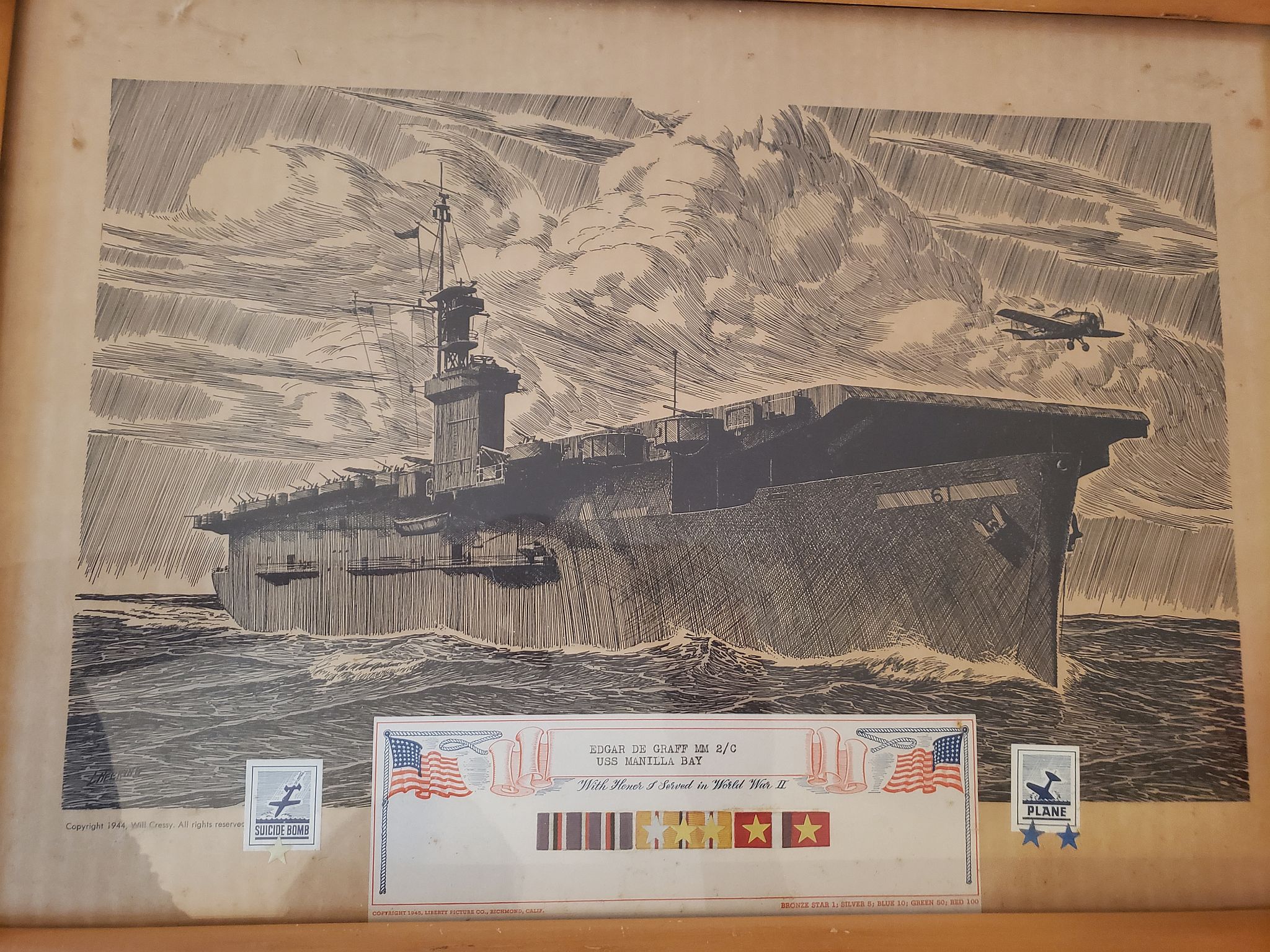 685k | A framed drawing/print of Manila Bay including some of Edgar's service record. |