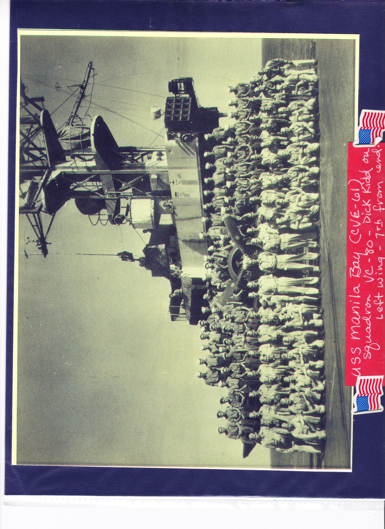 646k | USS Manila Bay (CVE-61), Composite Squadron (VC) 80. Dick Kidd on left wing, 7th from end. |