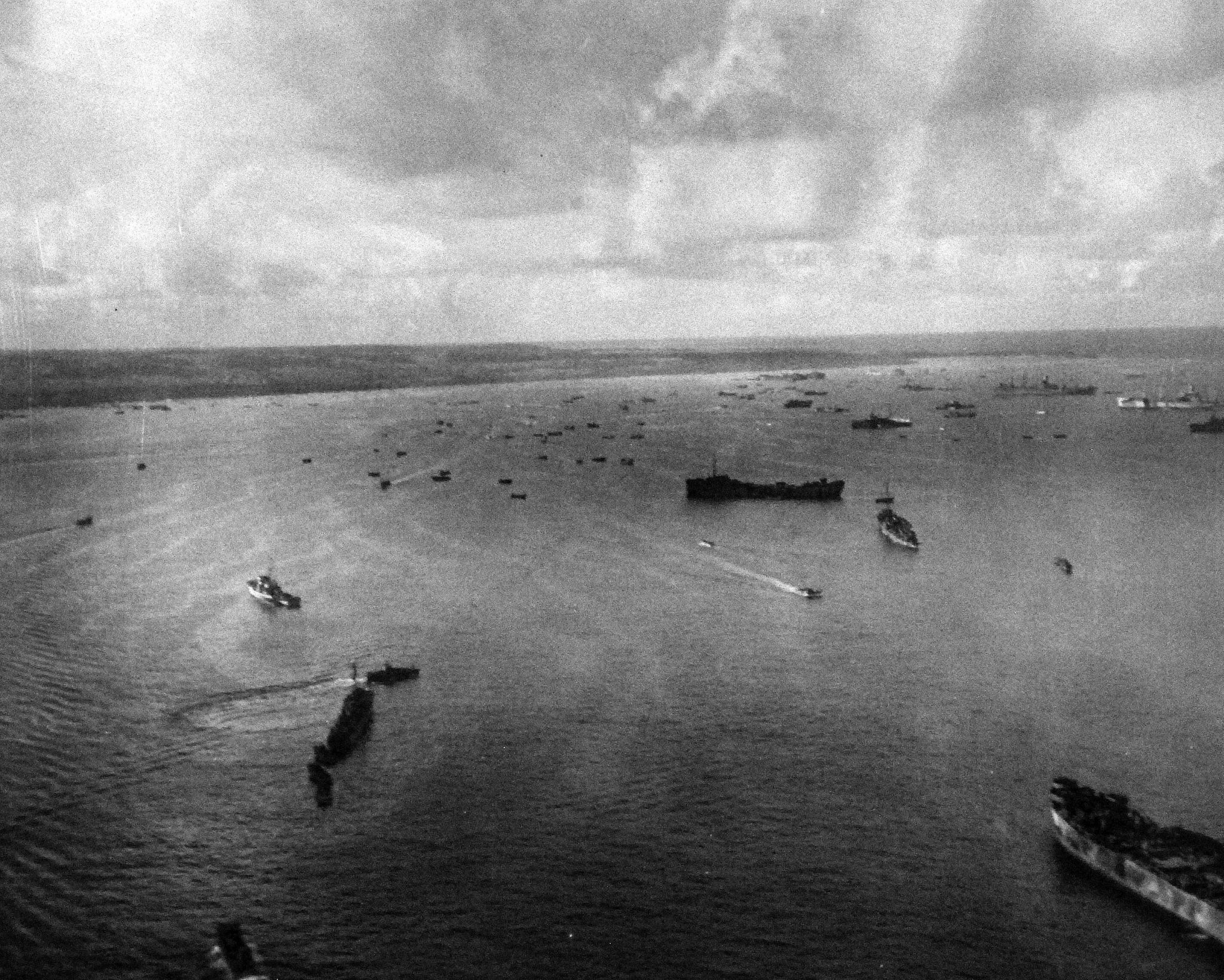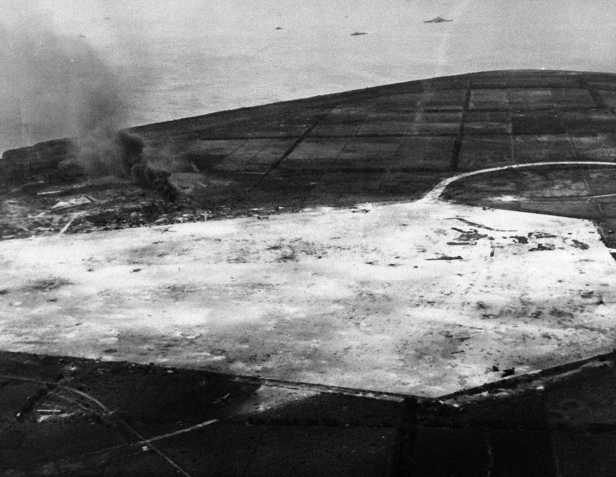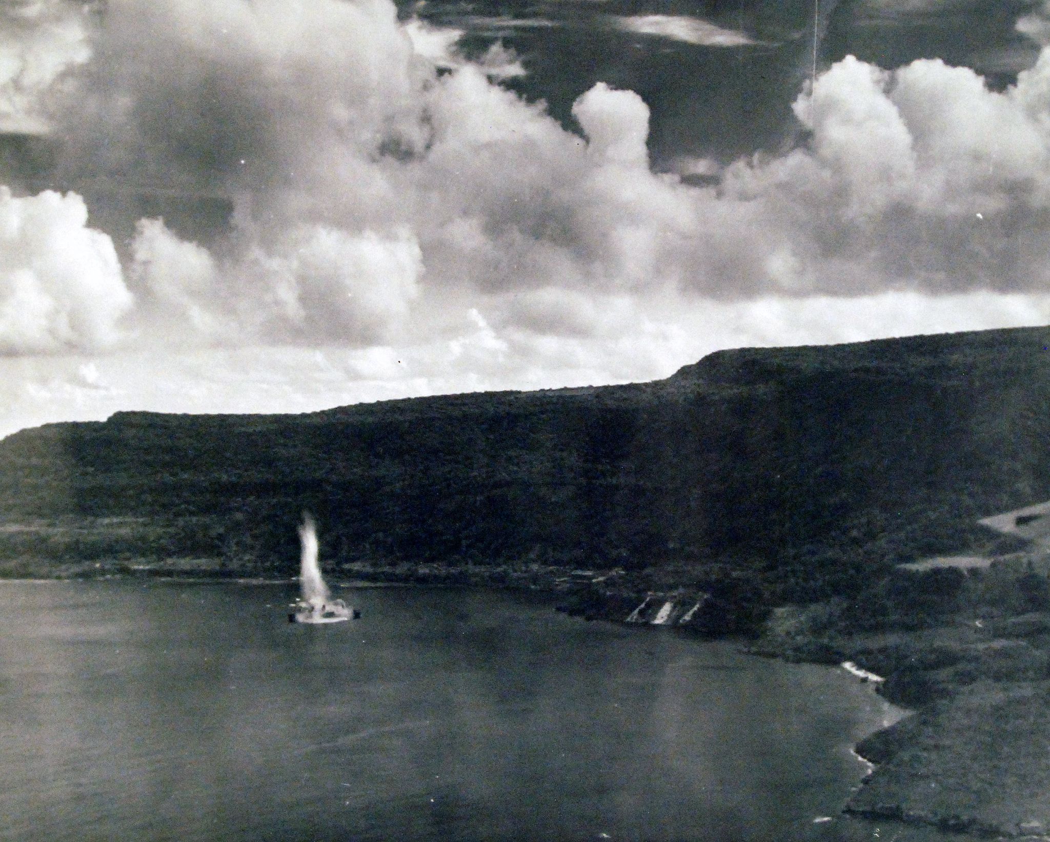 1.06M | Aerials of bombing of seaplane base at Flores Point, Saipan, by plane from USS White Plains (CVE-66), 3 July 1944. National Archives and Records Administration (NARA), # 80-G-384164. |