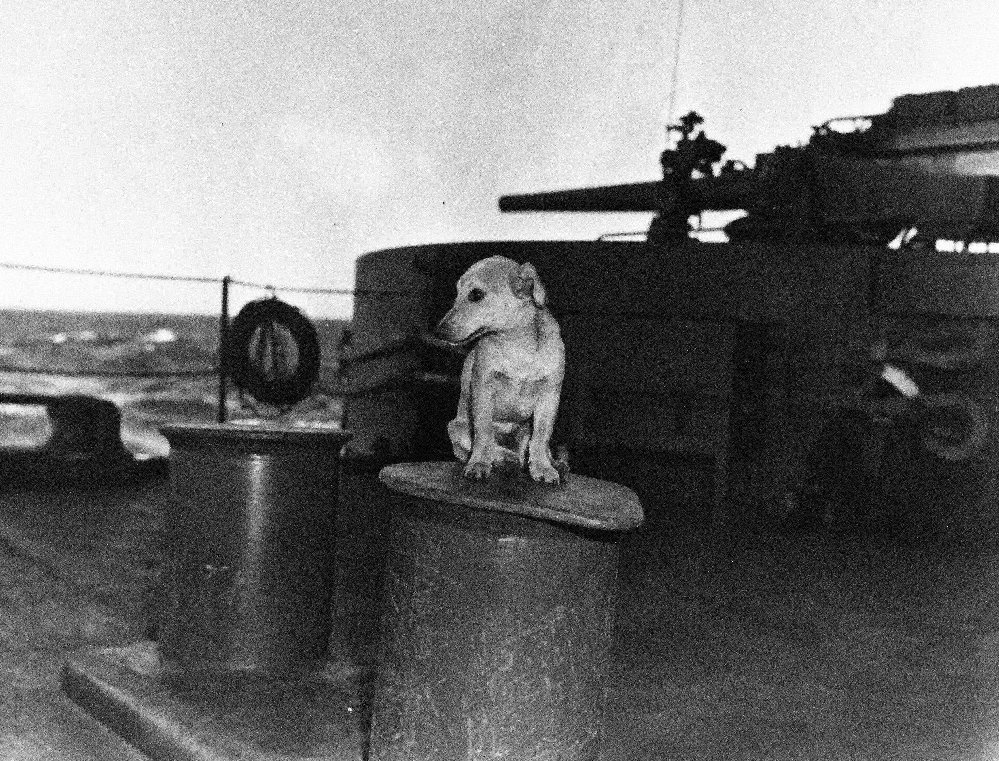 779k | Poncho, the mascot of USS White Plains (CVE-66), 11 December 1943. National Archives and Records Administration (NARA) photo, # 80-G-384069. |