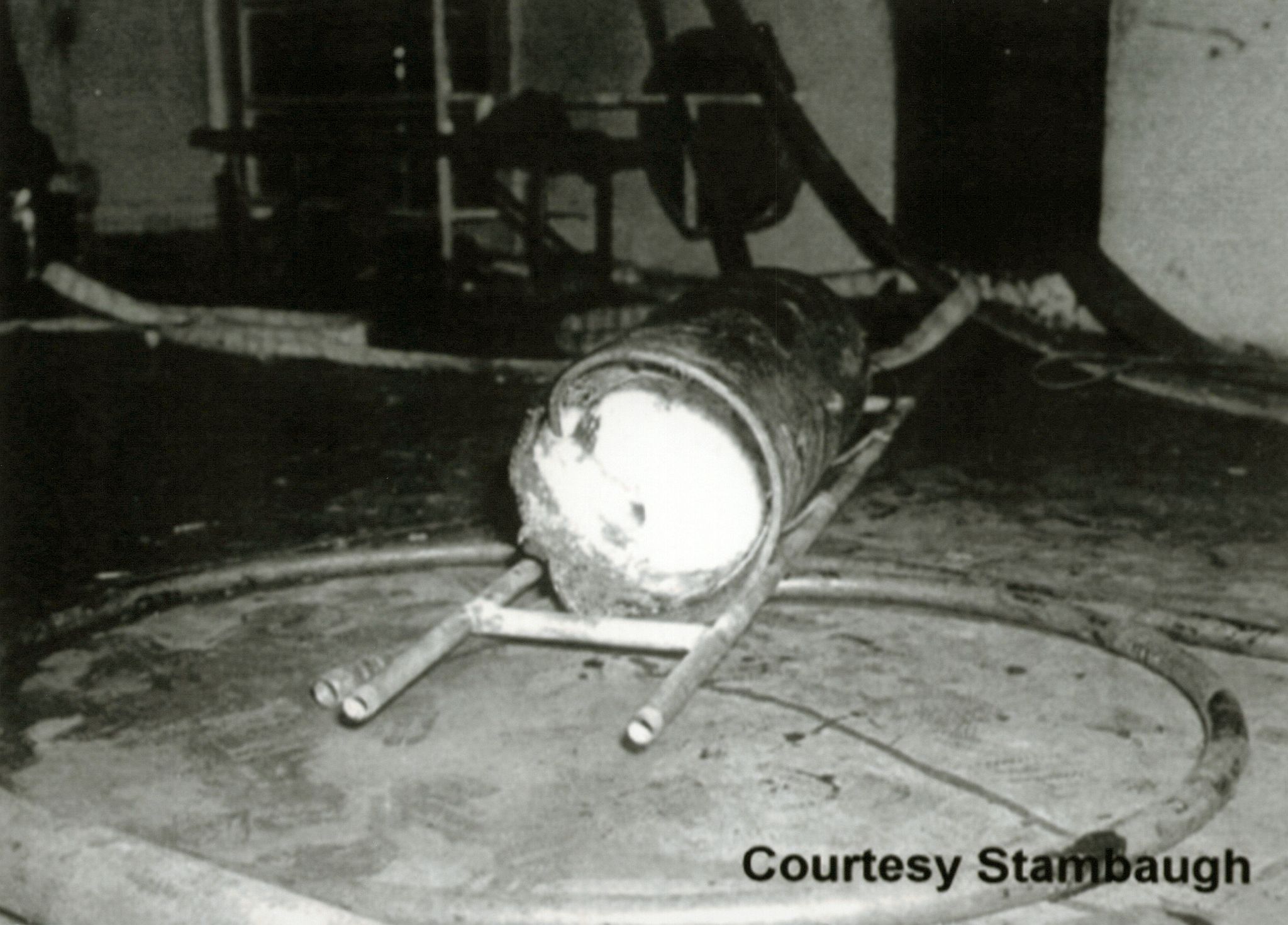 317k | 550-lb semi-armor-piercing bomb in removal cradle, unexploded. |