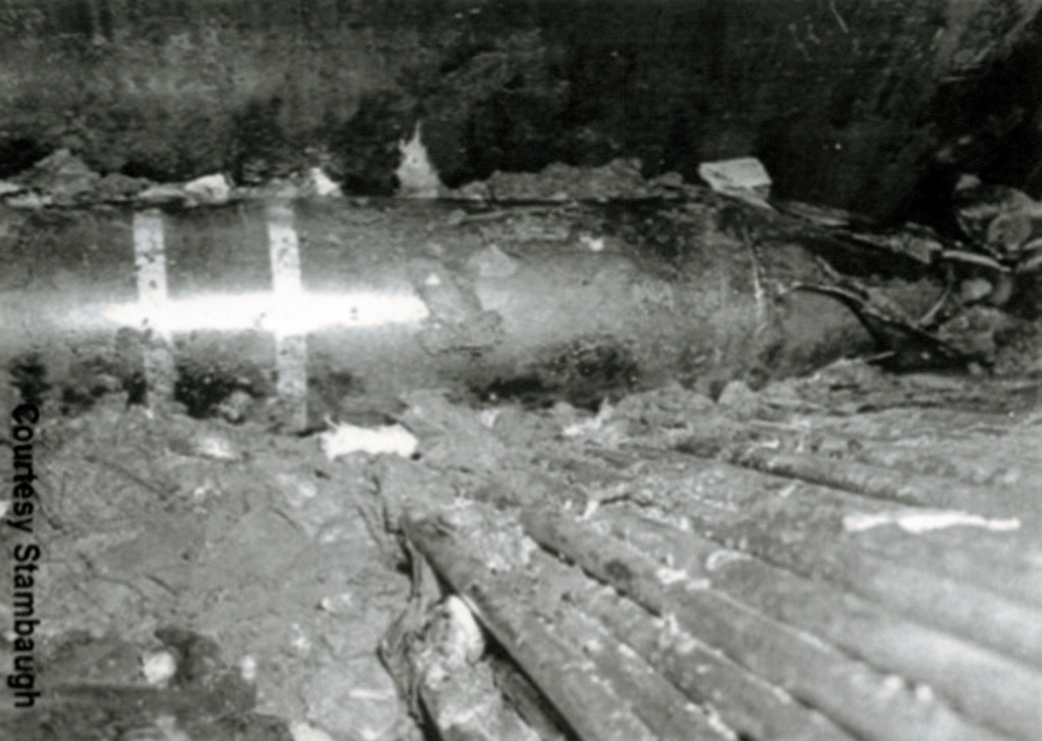 149k | Taken a moment later [this picture] shows a dense smoke cloud above the crash site. Photo from NARA (National Archives and Records Administration) facility in College Park, MD. Photo and text from Fire From The Sky, by Robert C. Stern. |