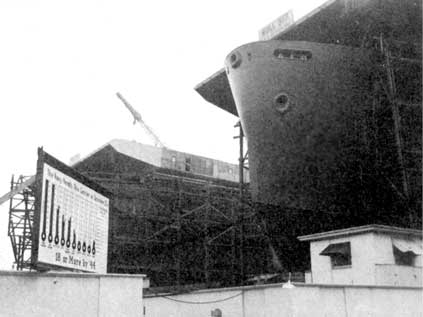 16k | "'The navy needs this carrier,' says the sign facing Hull 317, the USS Kitkun Bay, scheduled to be one of the '18 or more' to see service by the year's end." (From "Bo's'n's Whistle," Vol. 3, No. 21; November 11, 1943; page 7.) |