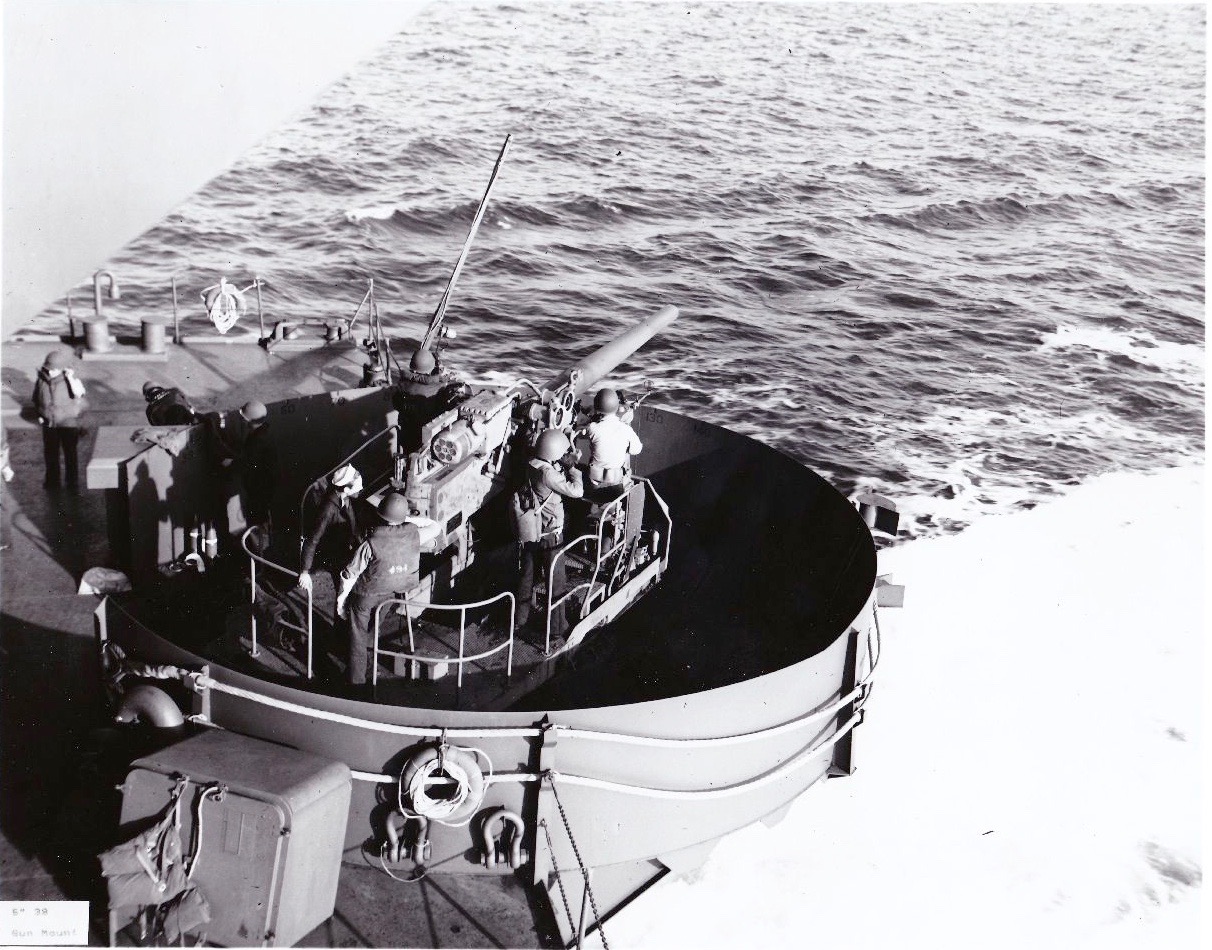 349k | USS Kitkun Bay (CVE-71), 5" gun and crew. Date and location unknown. |