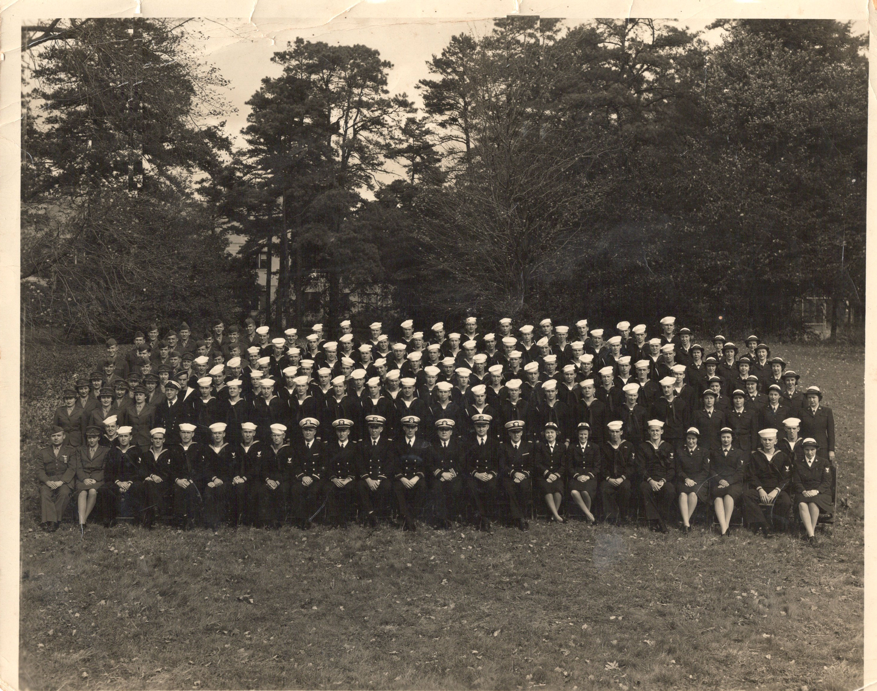 1.51M | Crew of USS Kitkun Bay (CVE-71). Gilber Sidney Raynor is on the back row, 4th from the left of the white hats. |