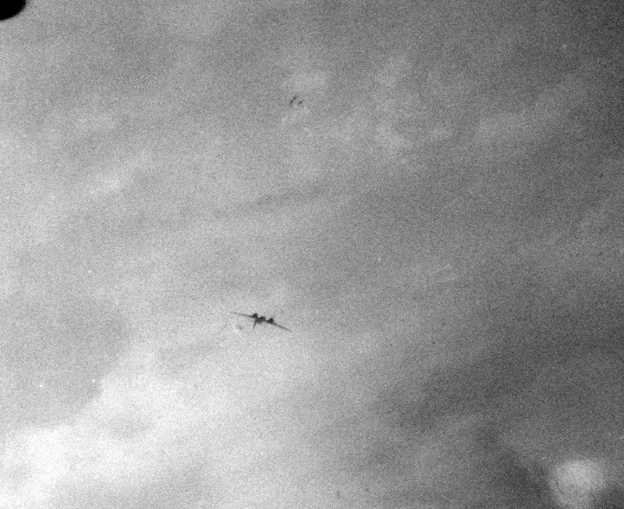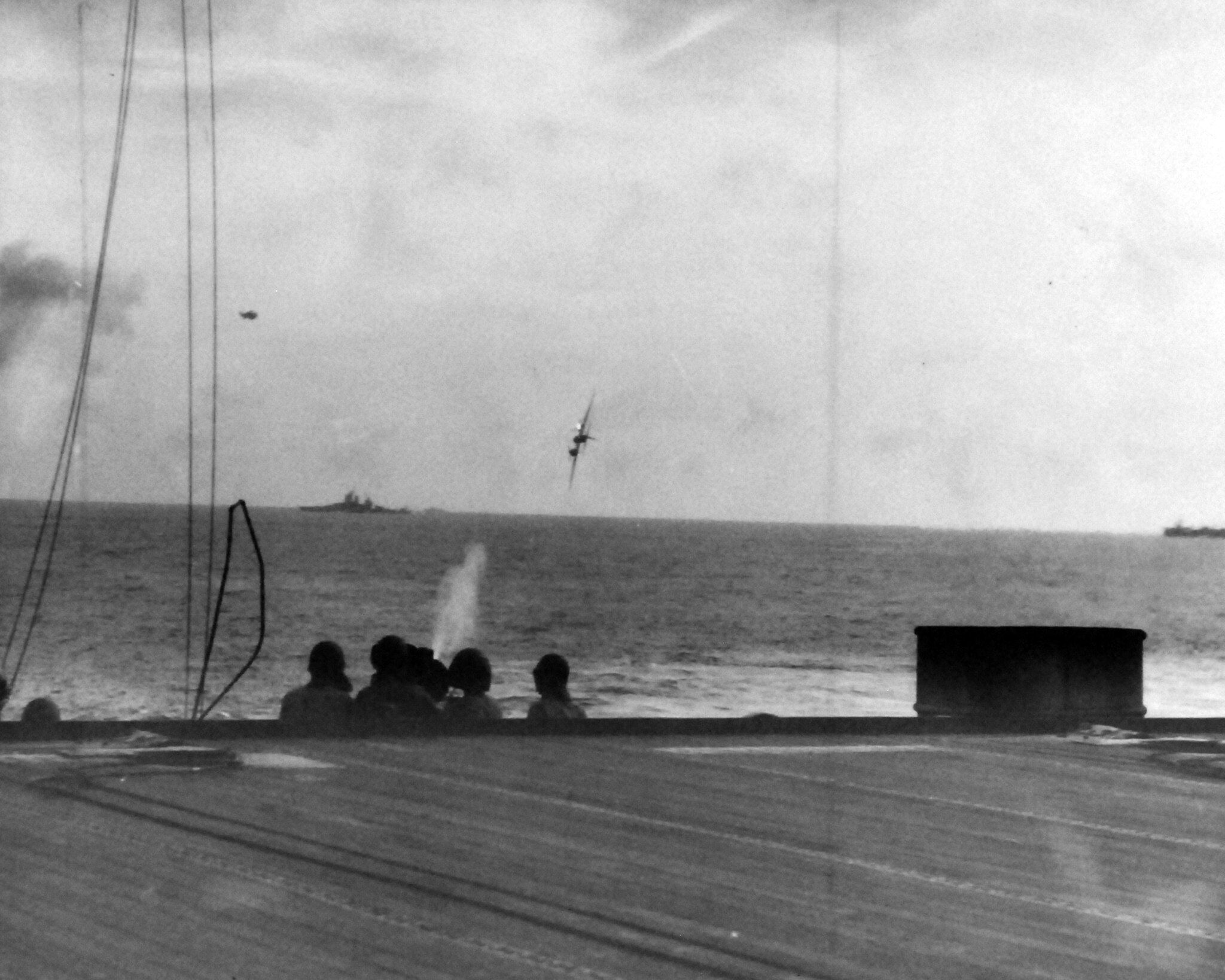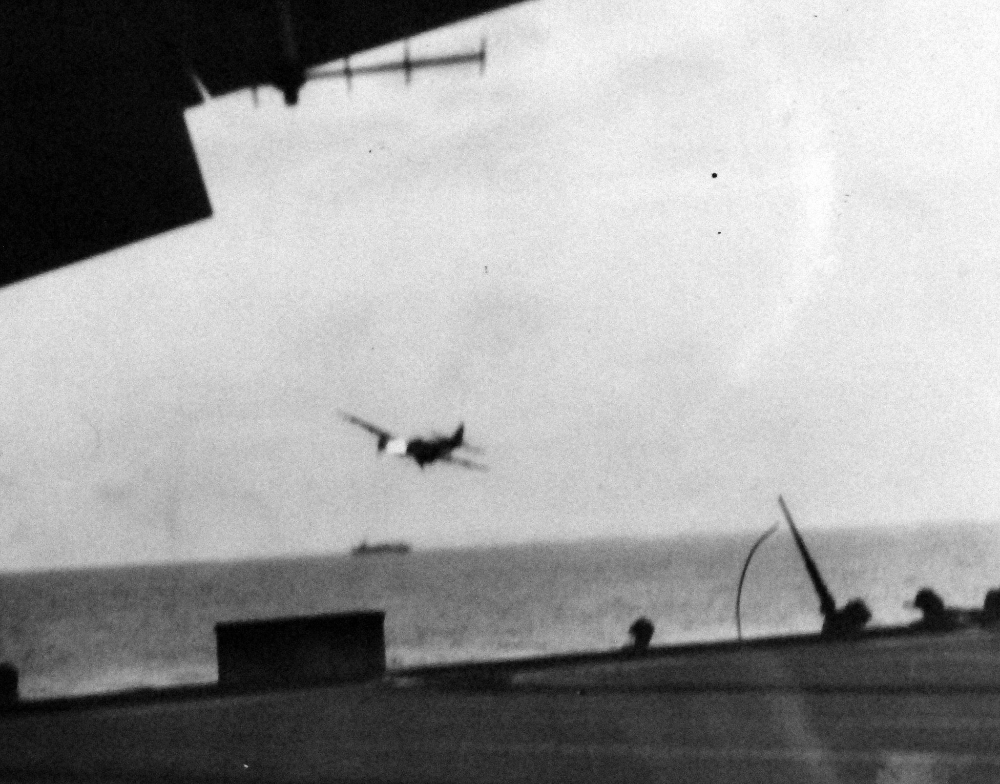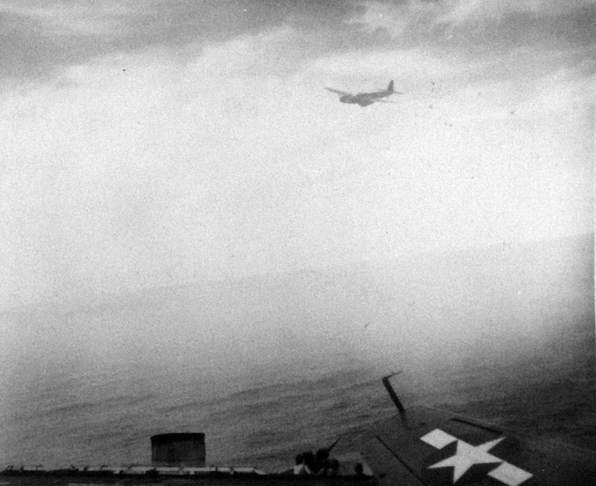 942k | Series of photos showing a Japanese Frances plane making a suicide attack on USS Ommaney Bay (CVE-79), 15 December 1944. National Archives and Records Administration (NARA) photo, # 80-G-270979. |
