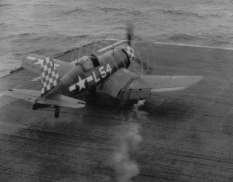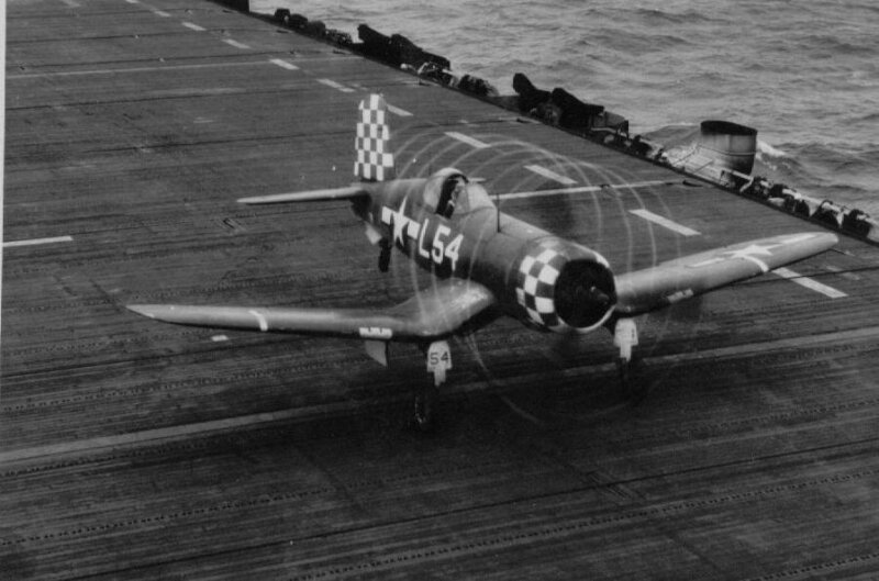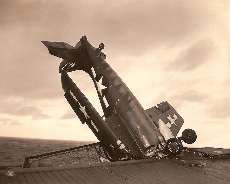 743k | FM-2 Wildcat hard landing after action, 1945. |