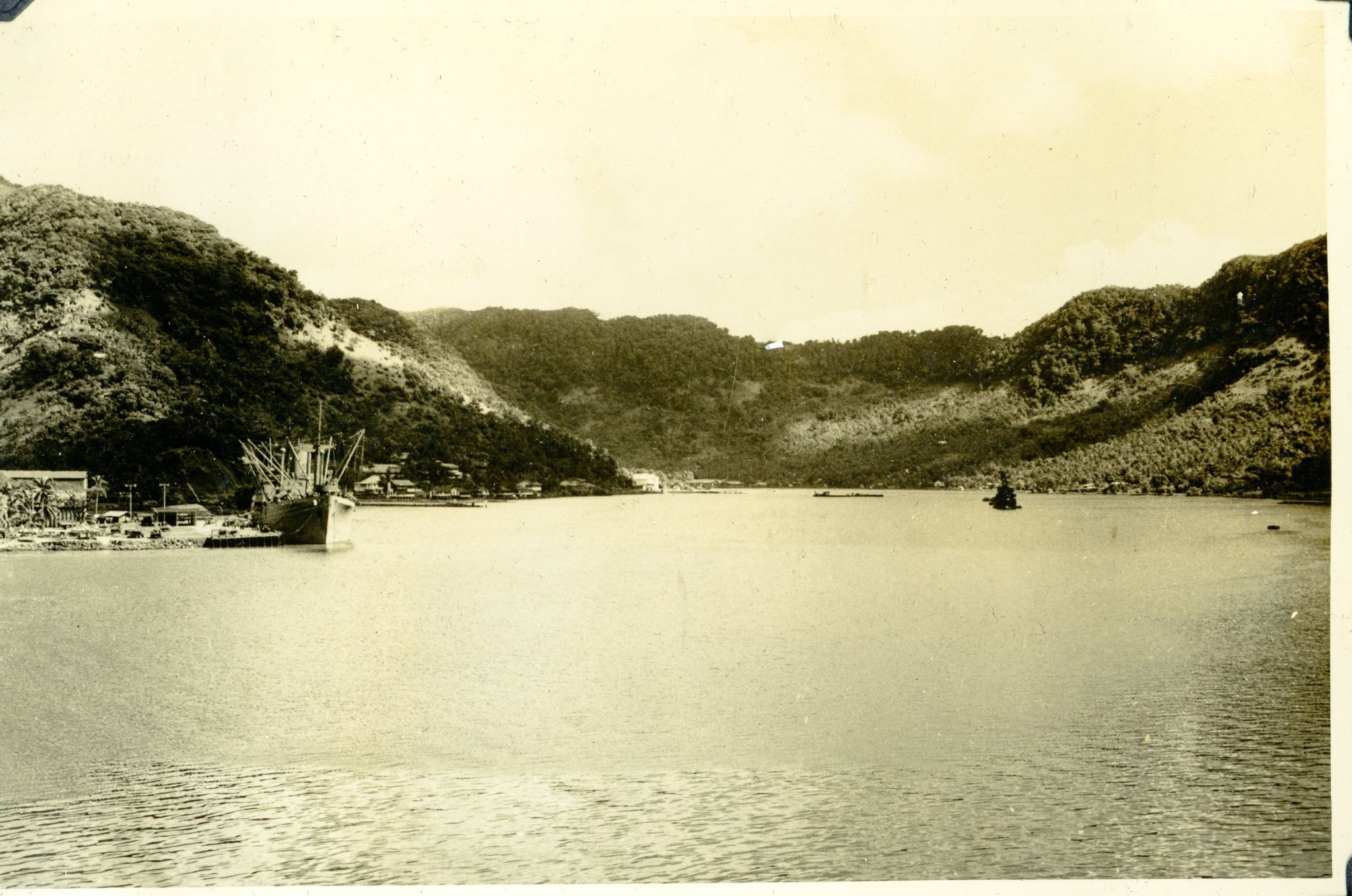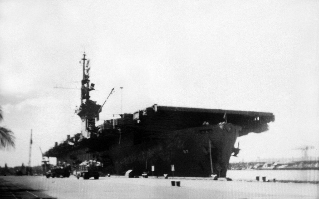 76k | USS Steamer Bay (CVE-87) docked on the West Side of Ford Island, Pearl Harbor, 1944–1945. |