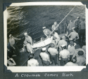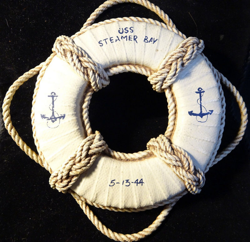 139k | Life ring, mini souvenir (approx. 5.5" across), USS Steamer Bay (CVE-87). Dated 13 May 1944, the day before she departed the CONUS for the first time, headed for the New Hebrides. |