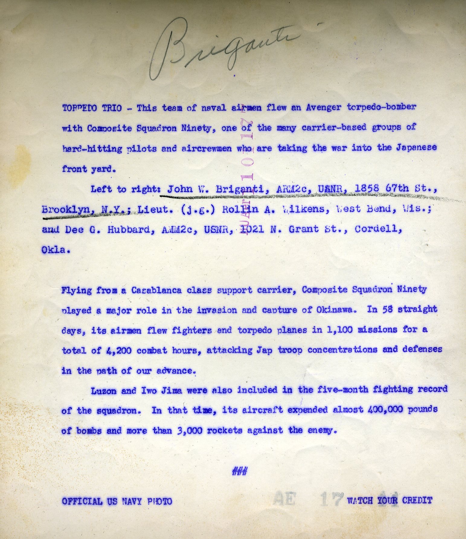John Newlin, son of LT(JG) John "Jack" Newlin Larger copy and caption submitted by Charles S. Garufi for his friend, John W. Briganti, AMR2/c, USNR |