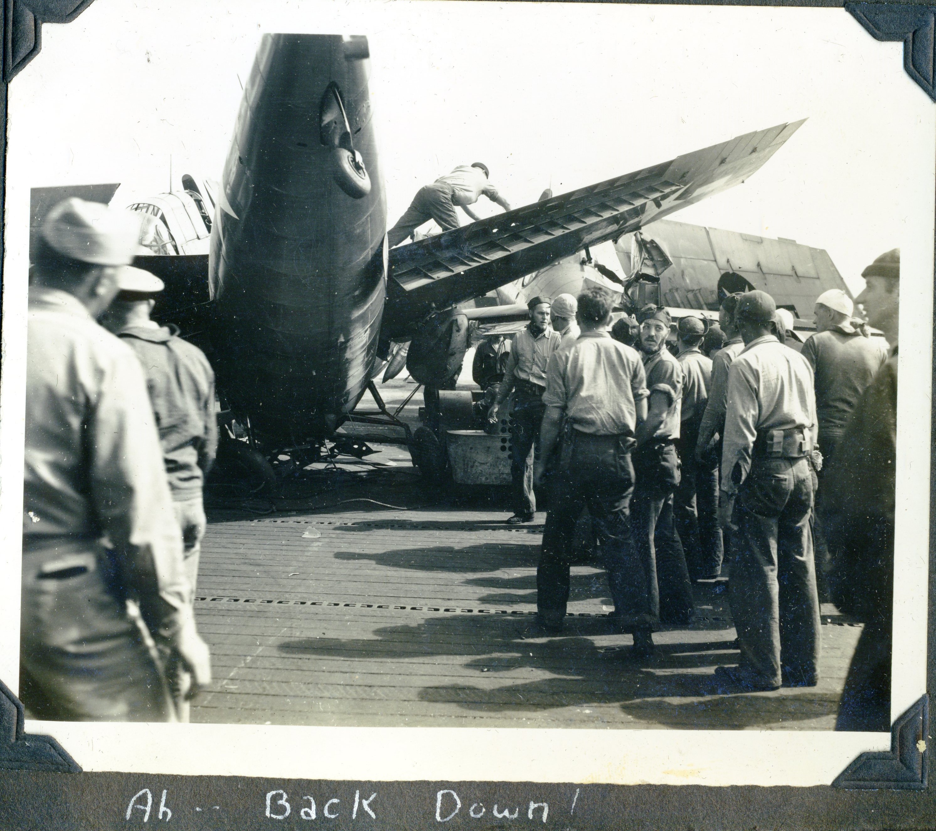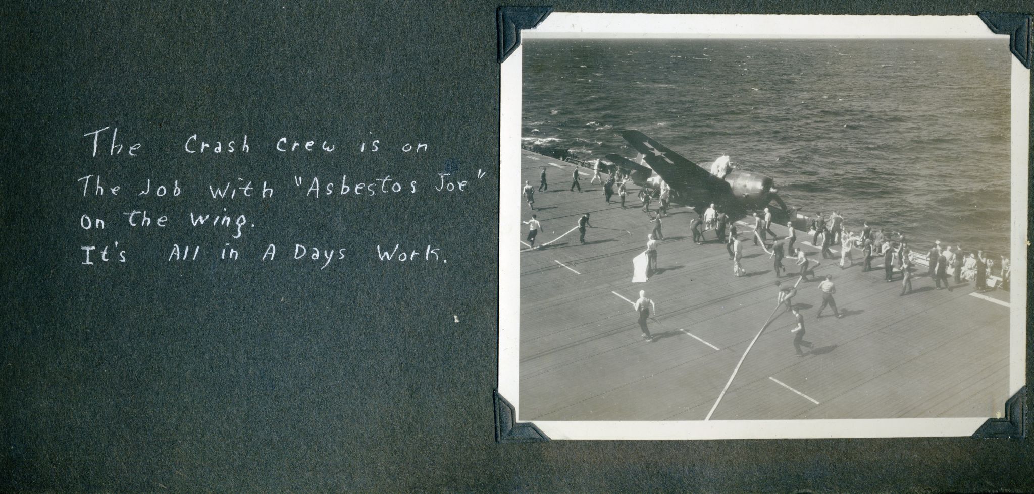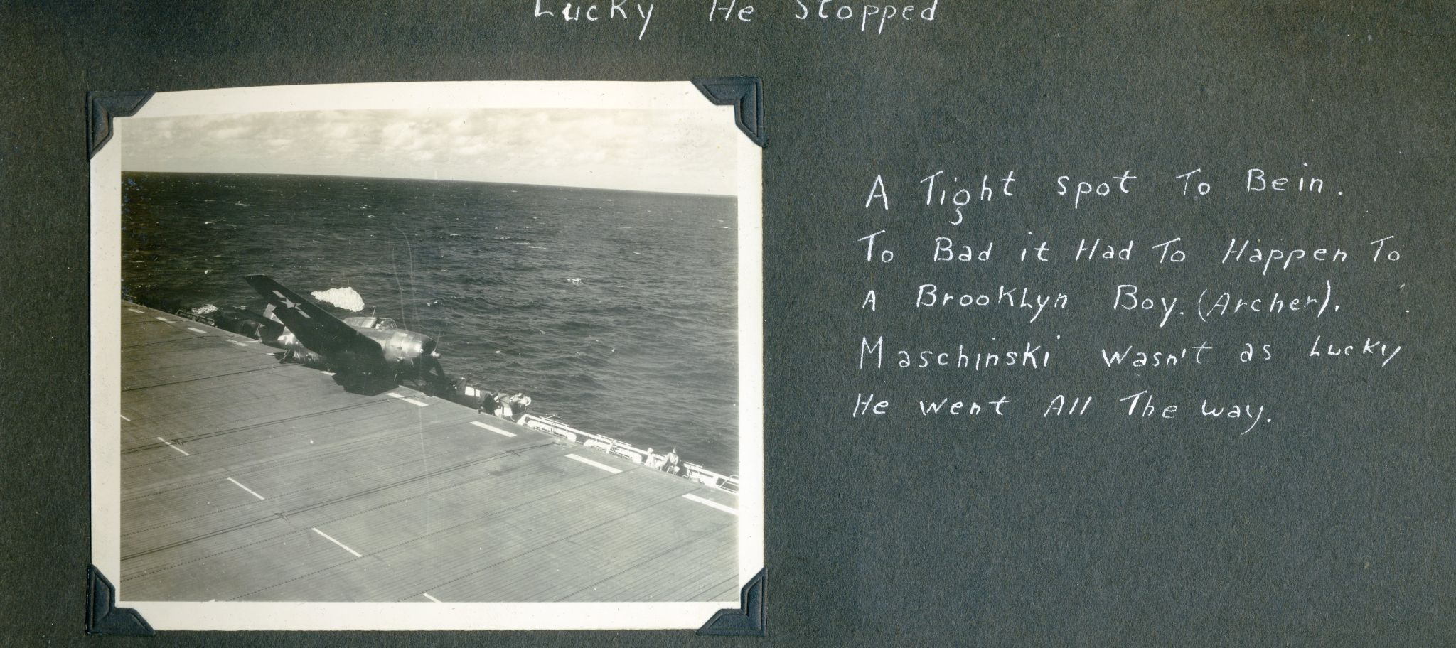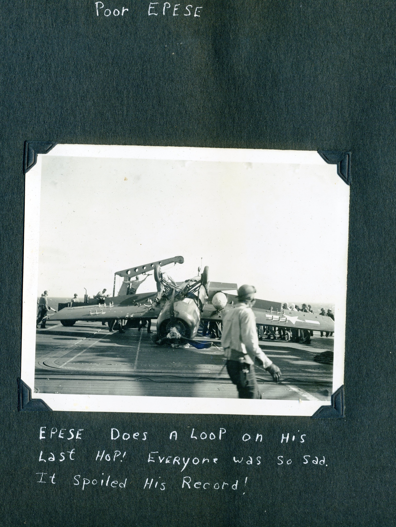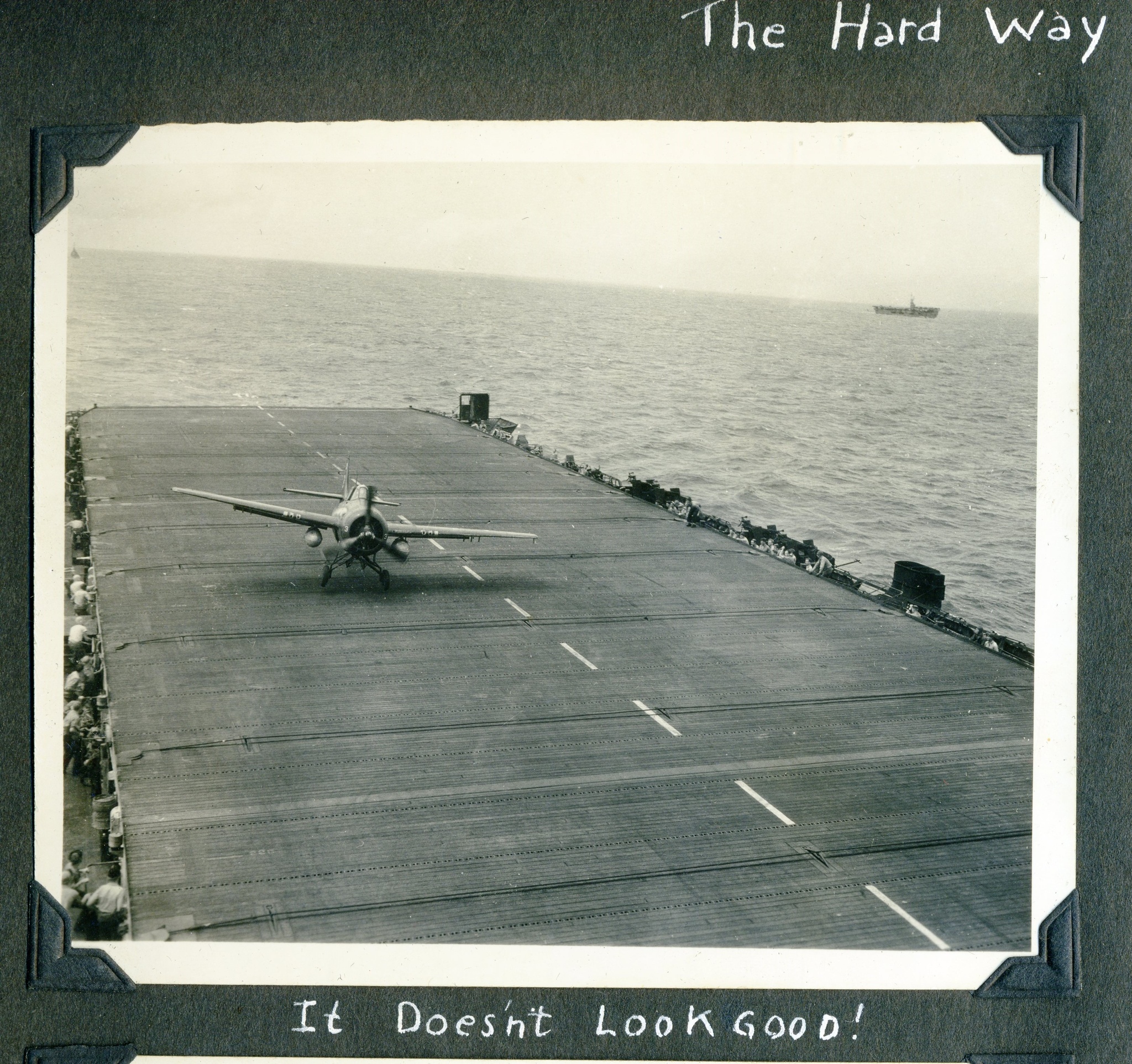 607k | "You can't always win. Jan. 4, 1945. The sinking of the Ommaney Bay by suicide planes in the Sulu Sea. She had changed places with us only a short time before!!" |