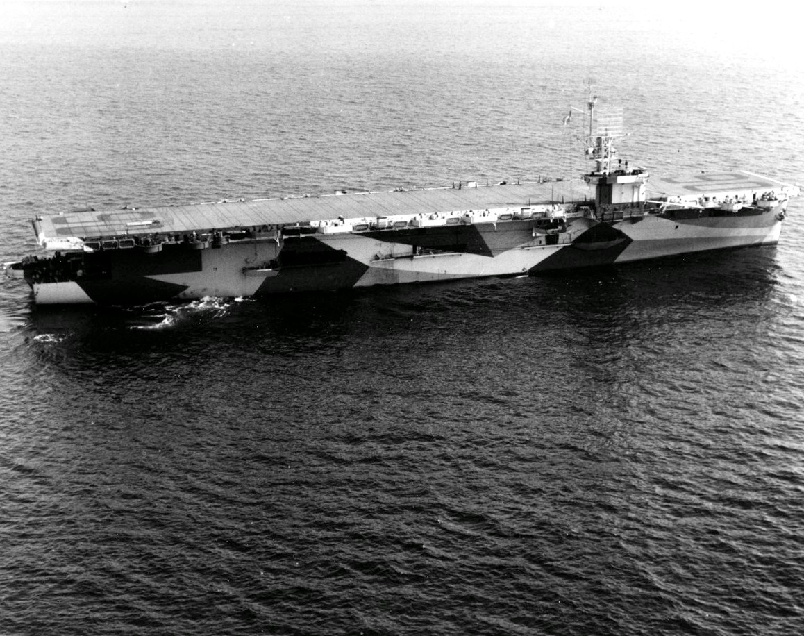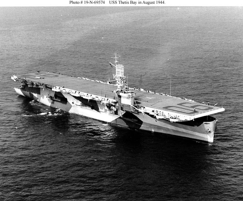 206k | USS Thetis Bay (CVE-90) photographed on 7 August 1944. The ship is painted in Camouflage Measure 33, Design 10A. Photograph from the Bureau of Ships Collection in the U.S. National Archives (# 19-N-69574). |