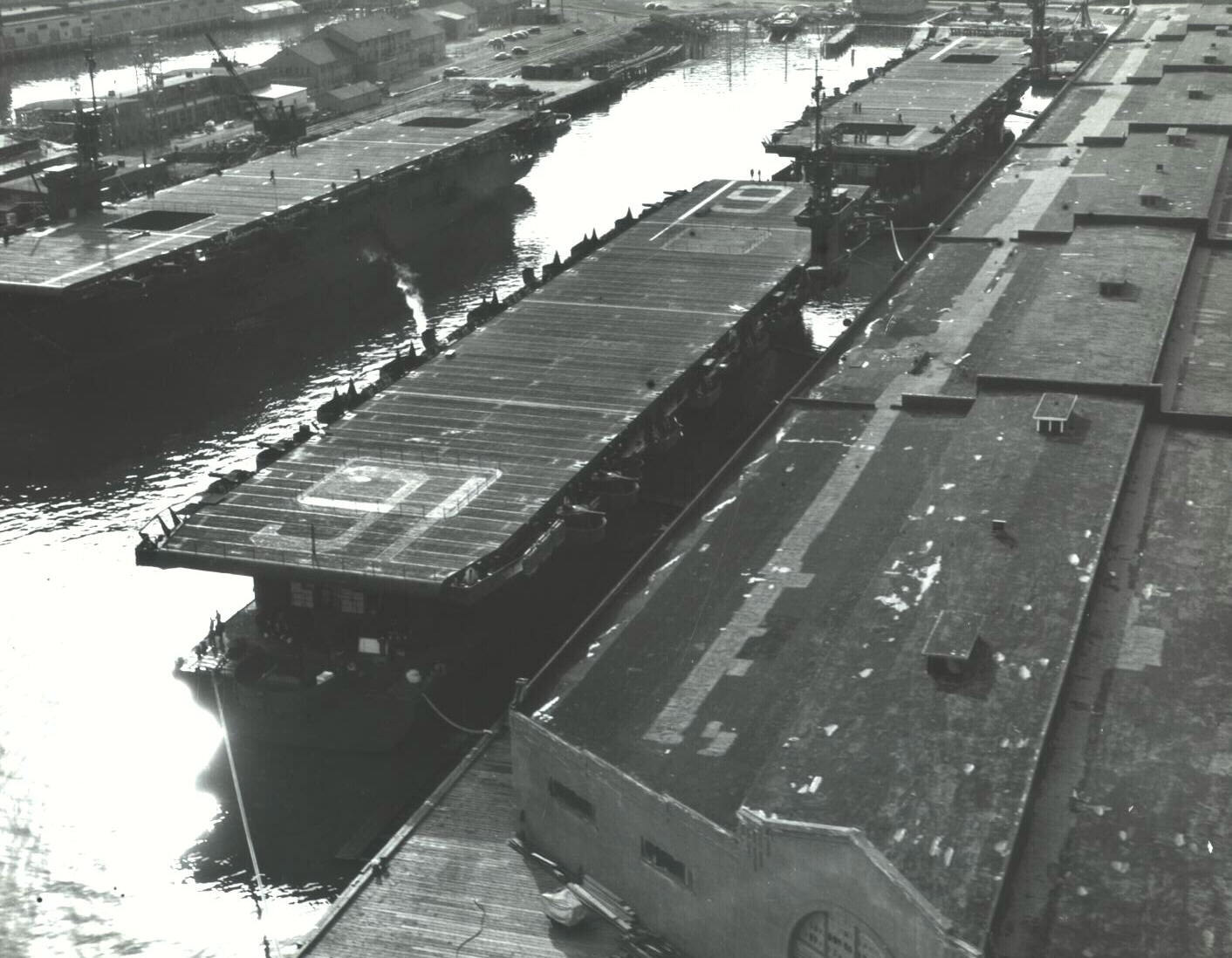 1000k | Good overhead view at dock, circa 1950; Thetis Bay in the background. National Archives photo # 80-G-372453. |