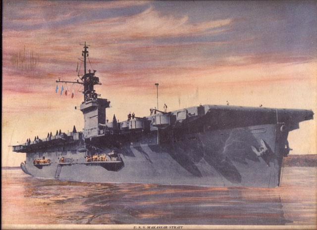 68k | USS Makassar Strait (CVE-91). | George Broadbent Jr., son of George Broadbent, USS Makassar Strait, 1944 |
