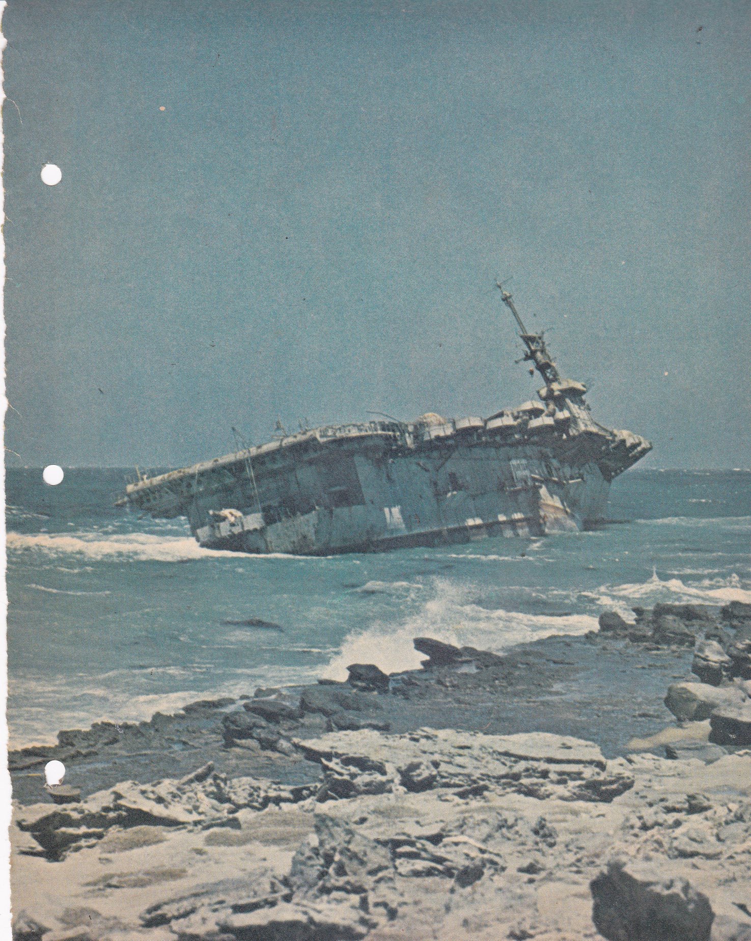 1.22M | In April 1961, while under tow to San Clemente Island, California (USA), ex-USS Makassar Strait ran aground on San Nicholas Island. |