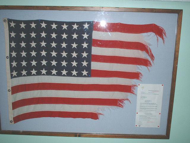 48k | Tattered flag from USS Makin Island, 1945 typhoon. Now on display at the USS Hornet Museum.. |