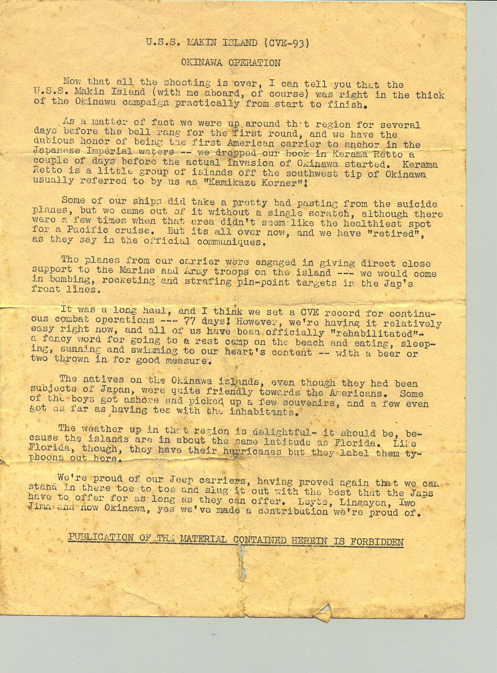 398k | Okinawa operations. Collection of LT J.W. Glock, who served as LSO aboard Makin Island, 1944–1945. |